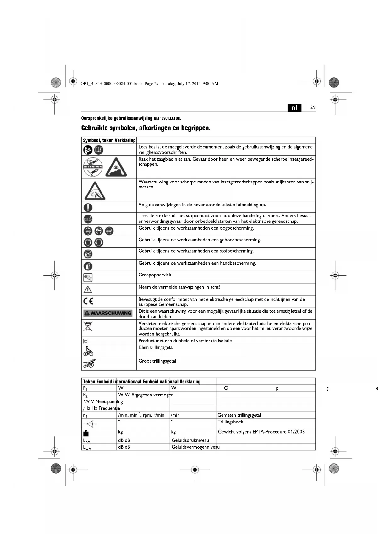 | a | m/s2 | m/s2 | Trillingsmissiewaarde volgens EN 60745 (vectorsom van drierichtingen) |