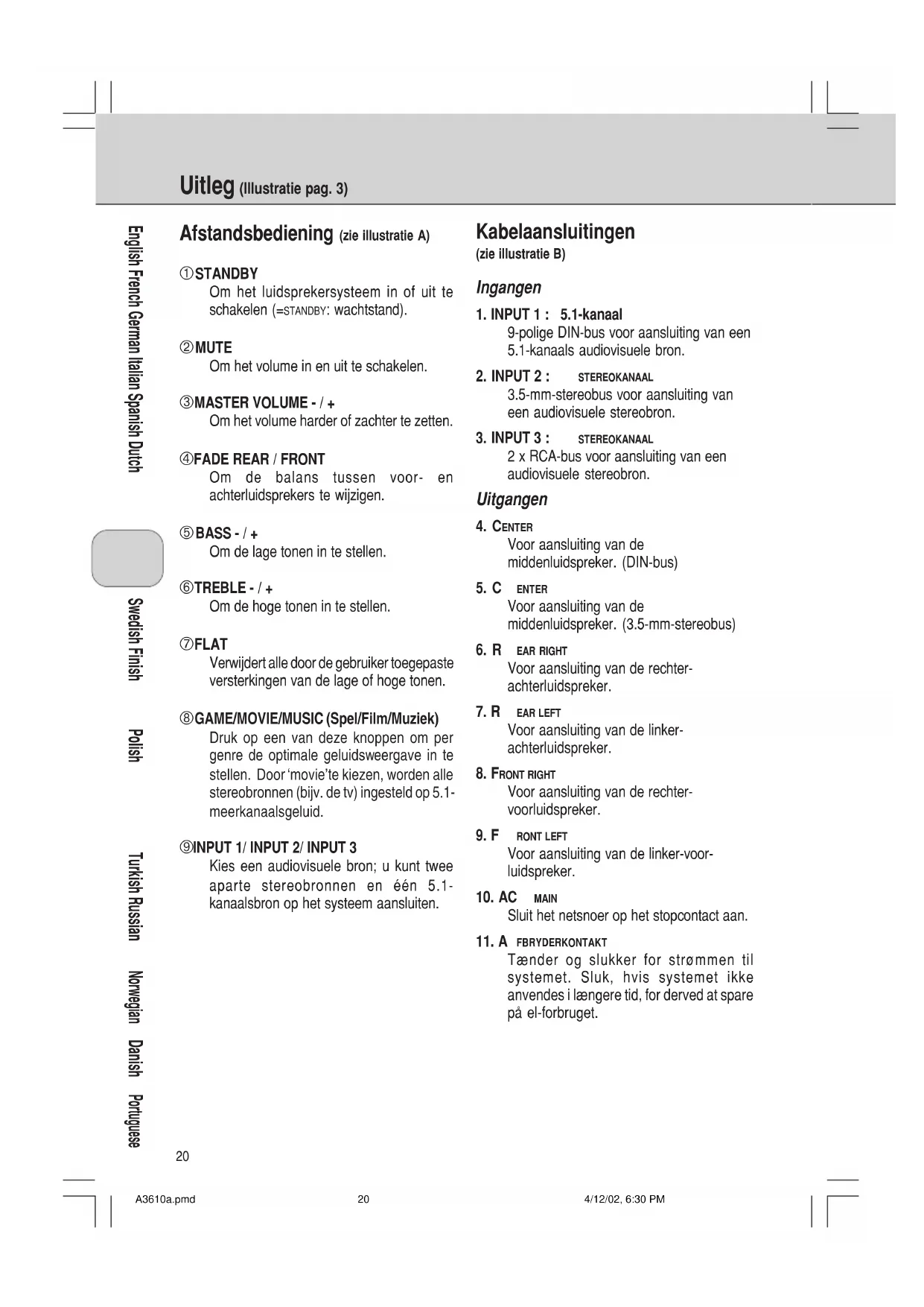 GEBRUIKSAANWIJZING A3.610 PHILIPS