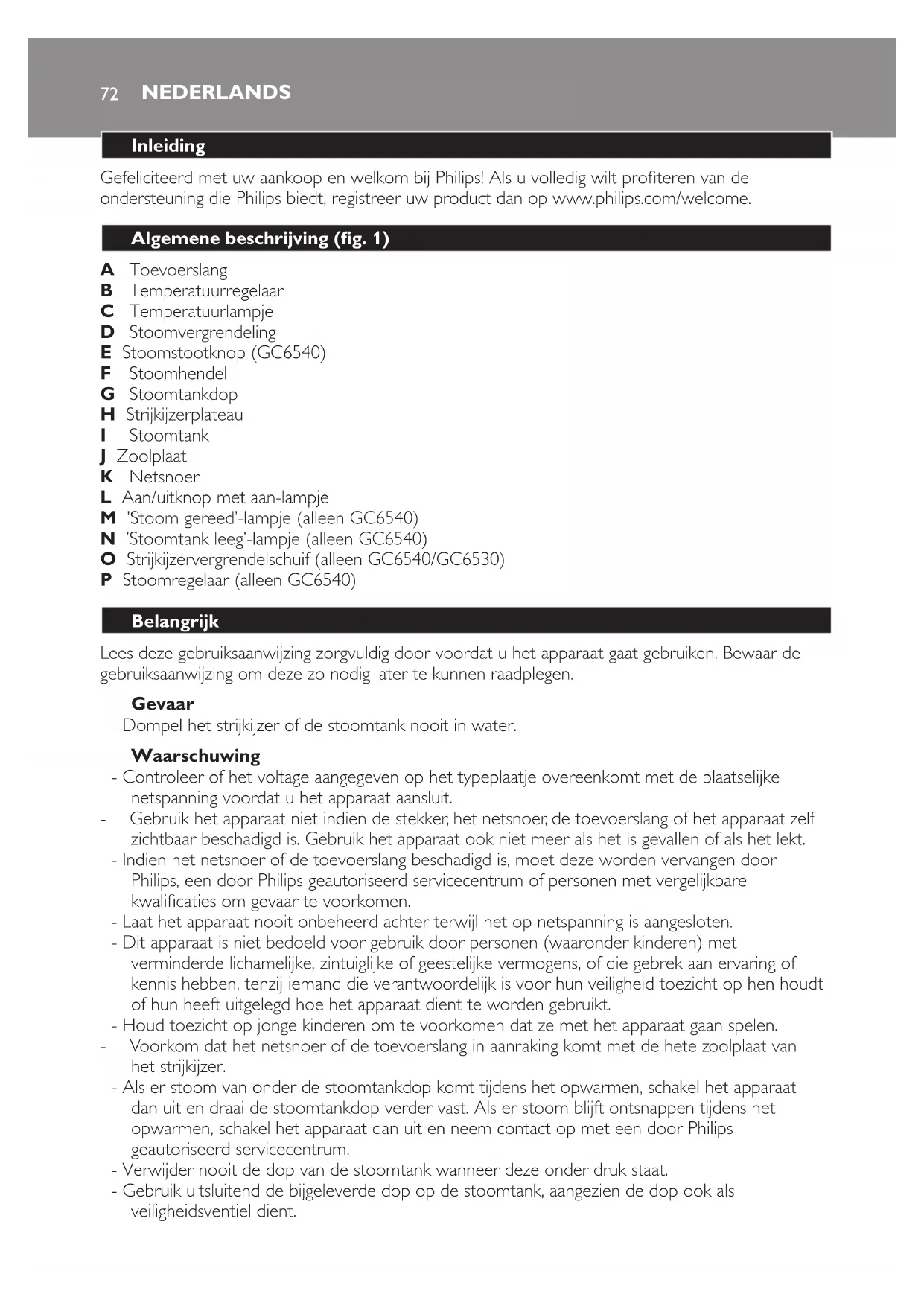 GEBRUIKSAANWIJZING CompactCare GC6540 PHILIPS