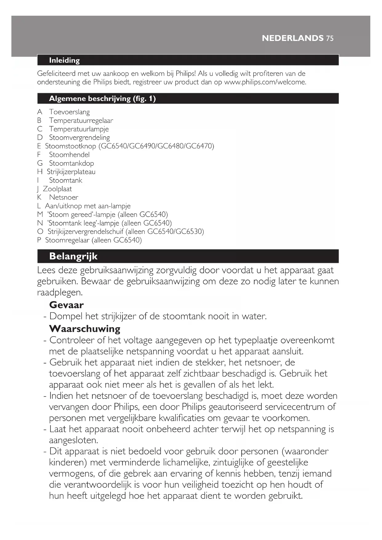 CompactCare GC6470 - Strijkijzer PHILIPS - Gratis gebruiksaanwijzing en handleiding