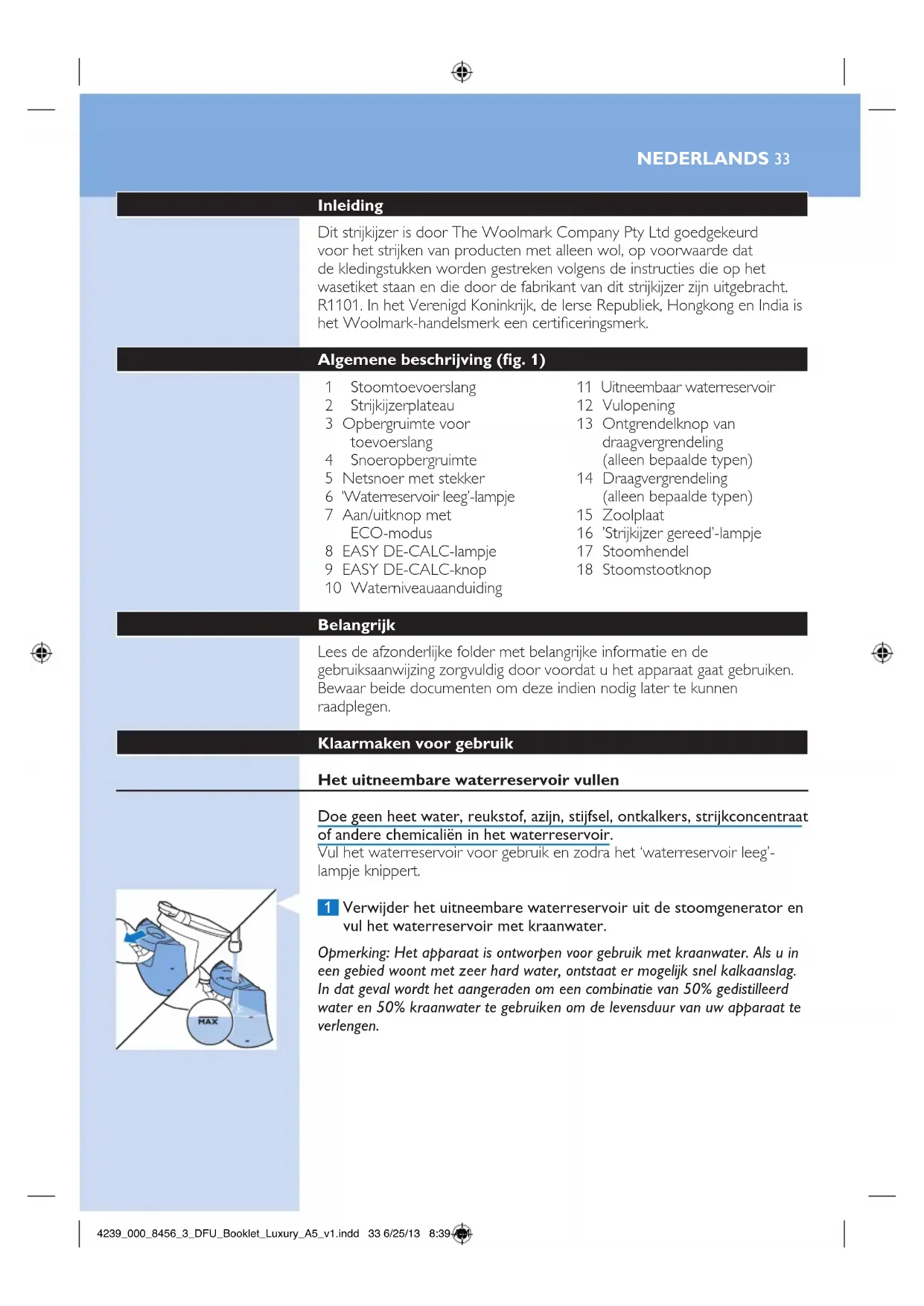 4239_000_8456_3_DFU_Booklet_Luxury_A5_v1.indd 37 6/25/13 8:39 AM4 Vouw de toevoerslang en het netsnoer op en berg deze op in hun