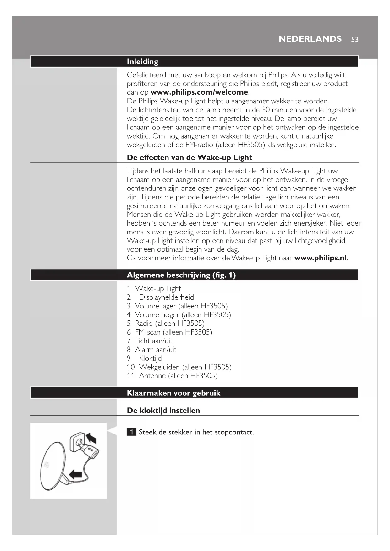 GEBRUIKSAANWIJZING Wakeup Light HF3500 PHILIPS