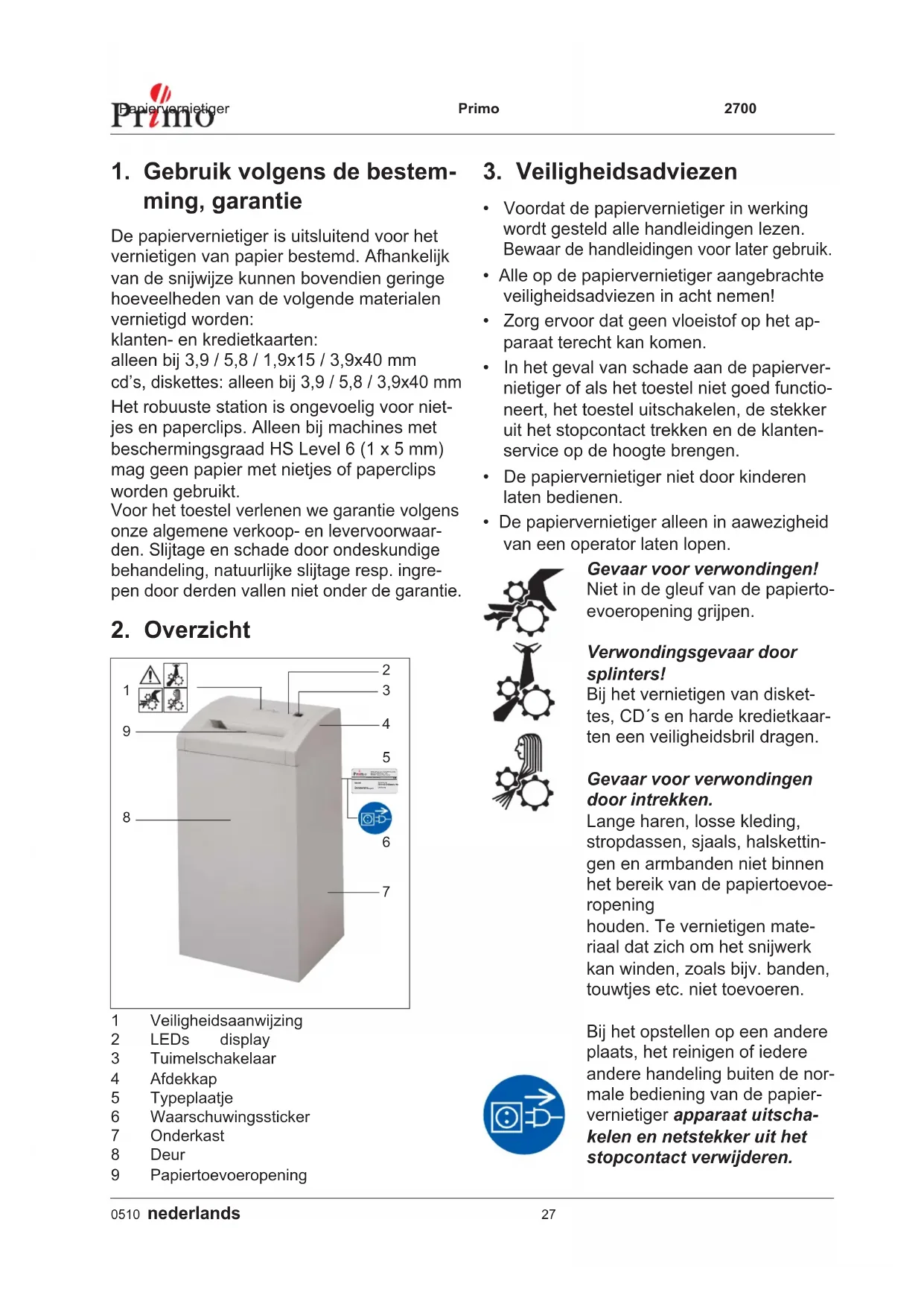 2700 Office - Vernietiger PRIMO - Gratis gebruiksaanwijzing en handleiding