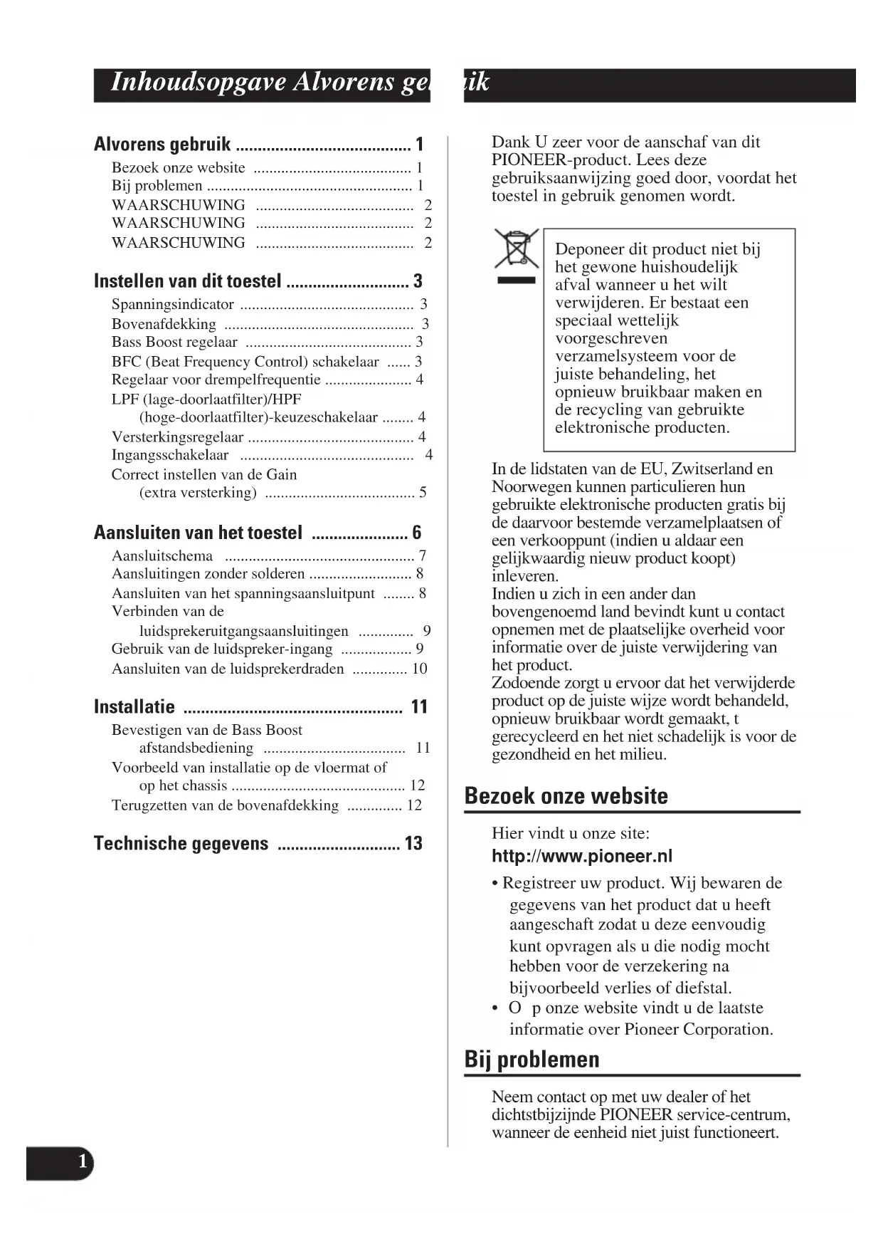 WAARSCHUWING Uw Pioneer versterker NIET installeren of