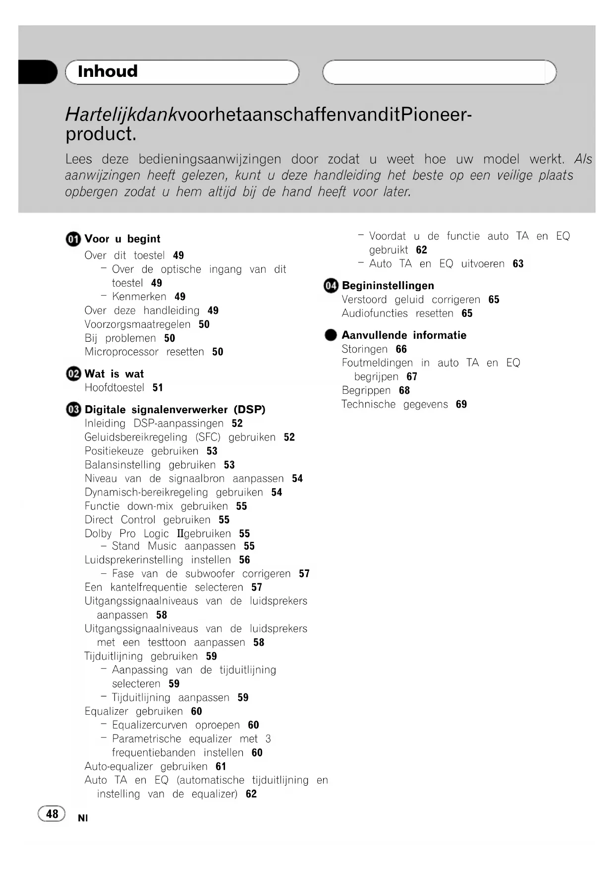47 Appendice ItalianoHartelijk dank voor het aanschaffen van dit Pioneer-