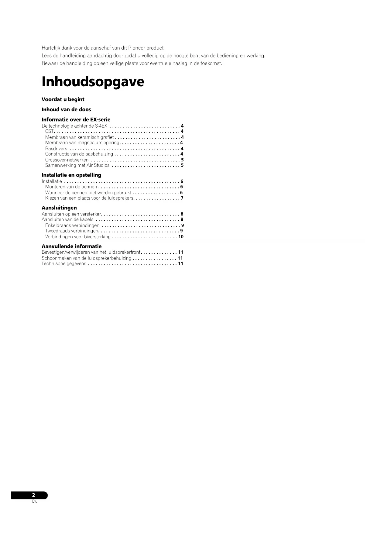 Hartelijk dank voor de aanschaf van dit Pioneer product.