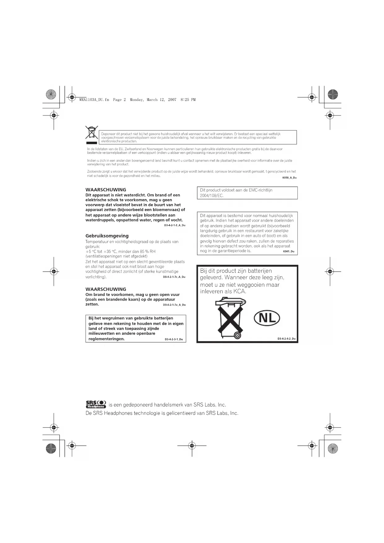 • Gebruiksaanwijzing WRA1103A_DU.fm Page 3 Monday, March 12, 2007 8:25 PM4
