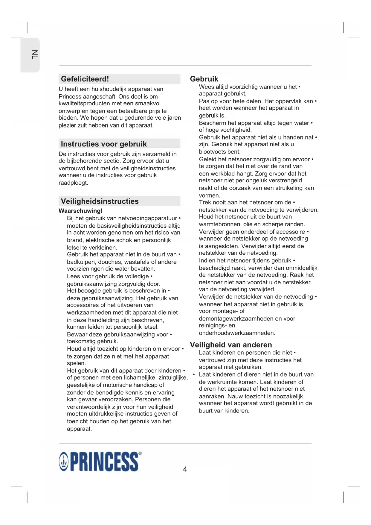 GEBRUIKSAANWIJZING 142601 PRINCESS