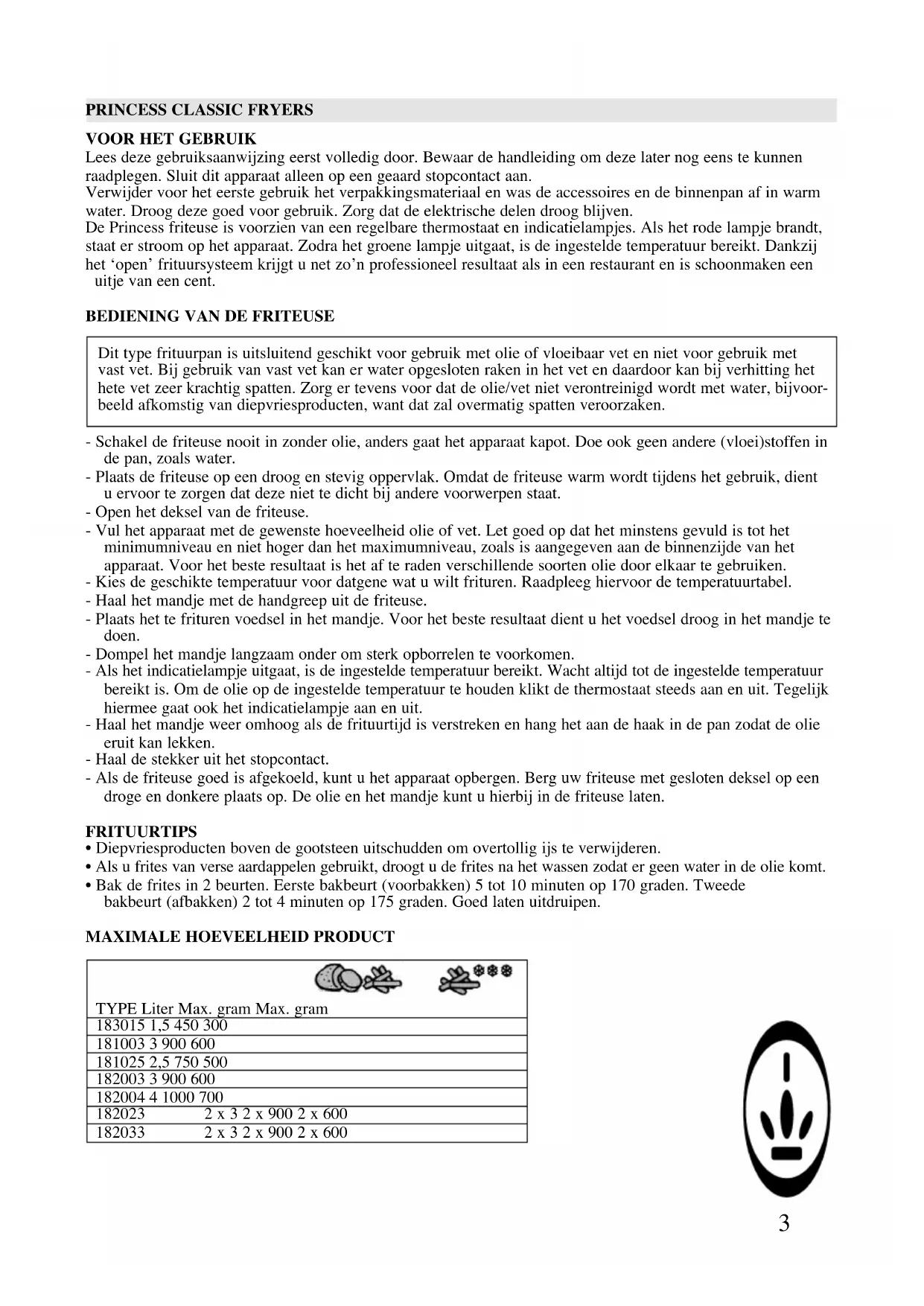PRINCESS CLASSIC FRYERS BEFORE USING Read these instructions thoroughly first and keep them for future reference. Only connect this