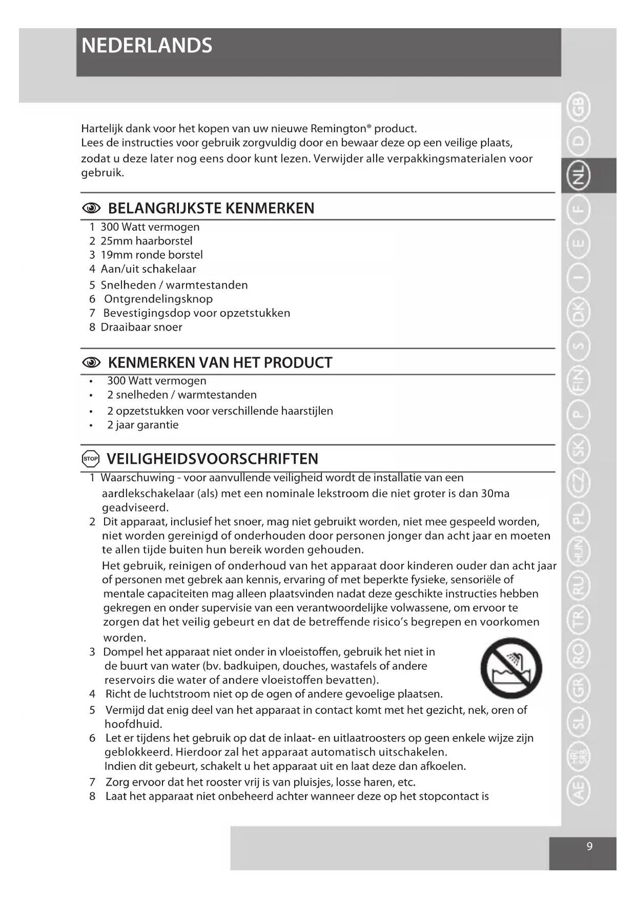 NEDERLANDS Hartelijk dank voor het kopen van uw nieuwe Remington® product.