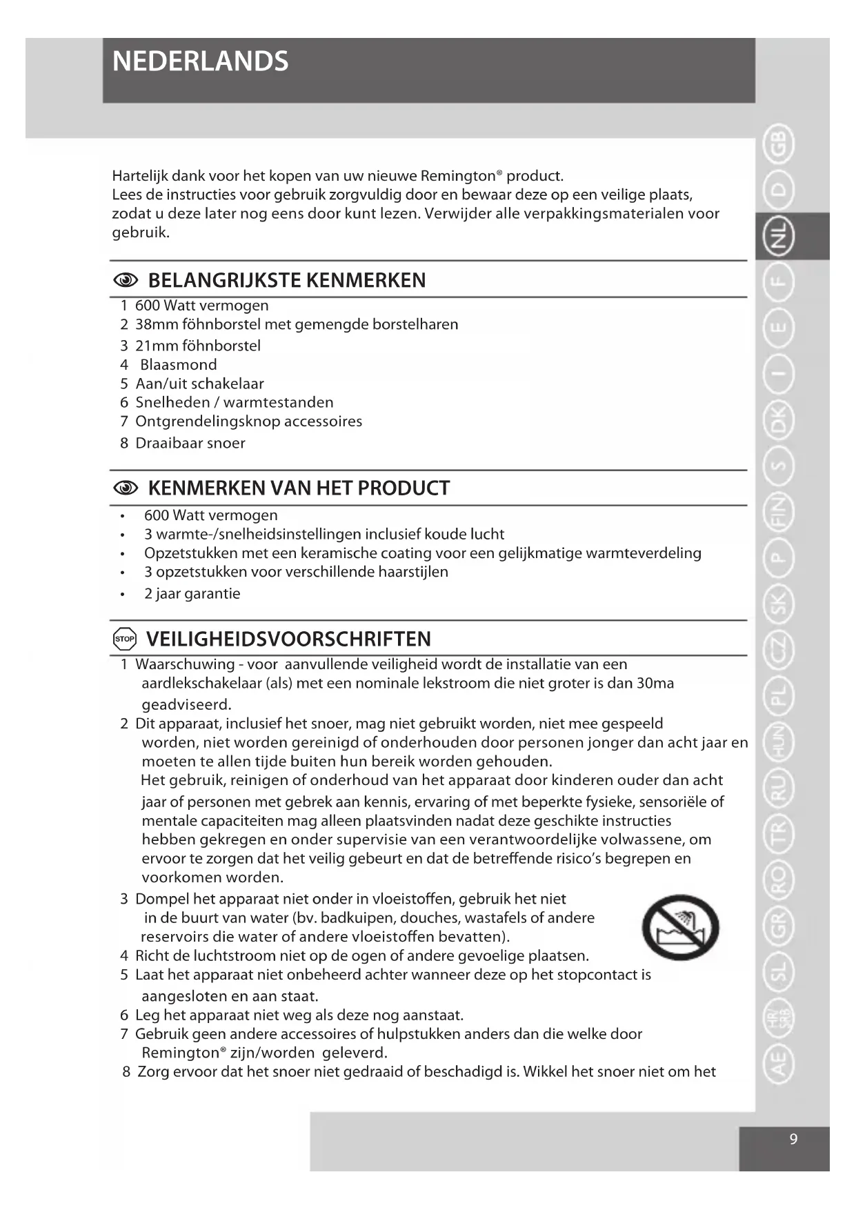 NEDERLANDS Hartelijk dank voor het kopen van uw nieuwe Remington® product.