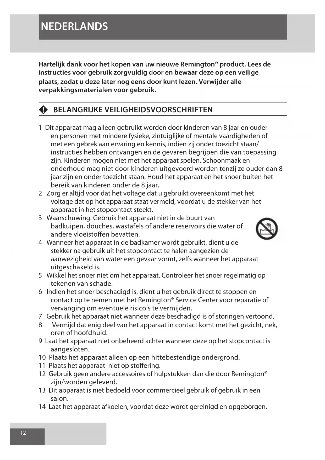 NEDERLANDS Hartelijk dank voor het kopen van uw nieuwe Remington® product. Lees de
