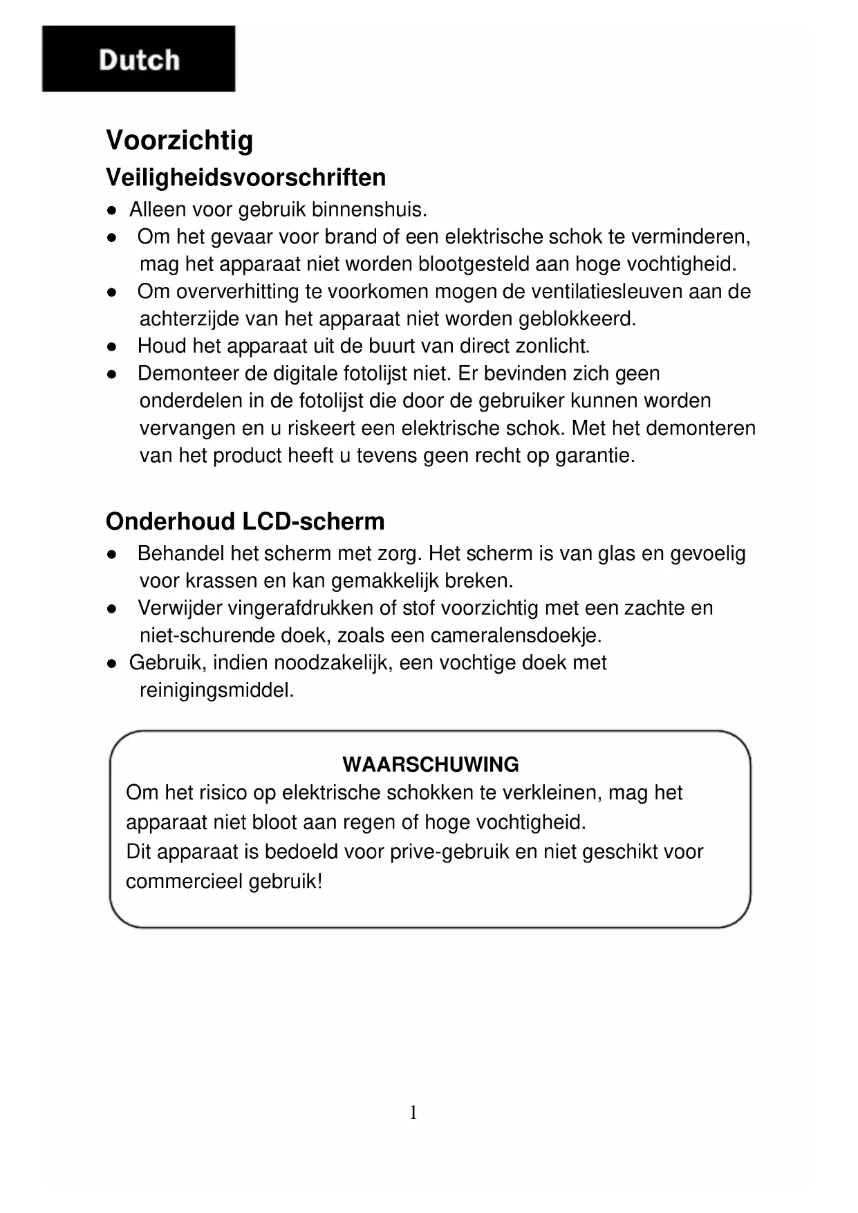 Dit apparaat is bedoeld voor prive-gebruik en niet geschikt voor