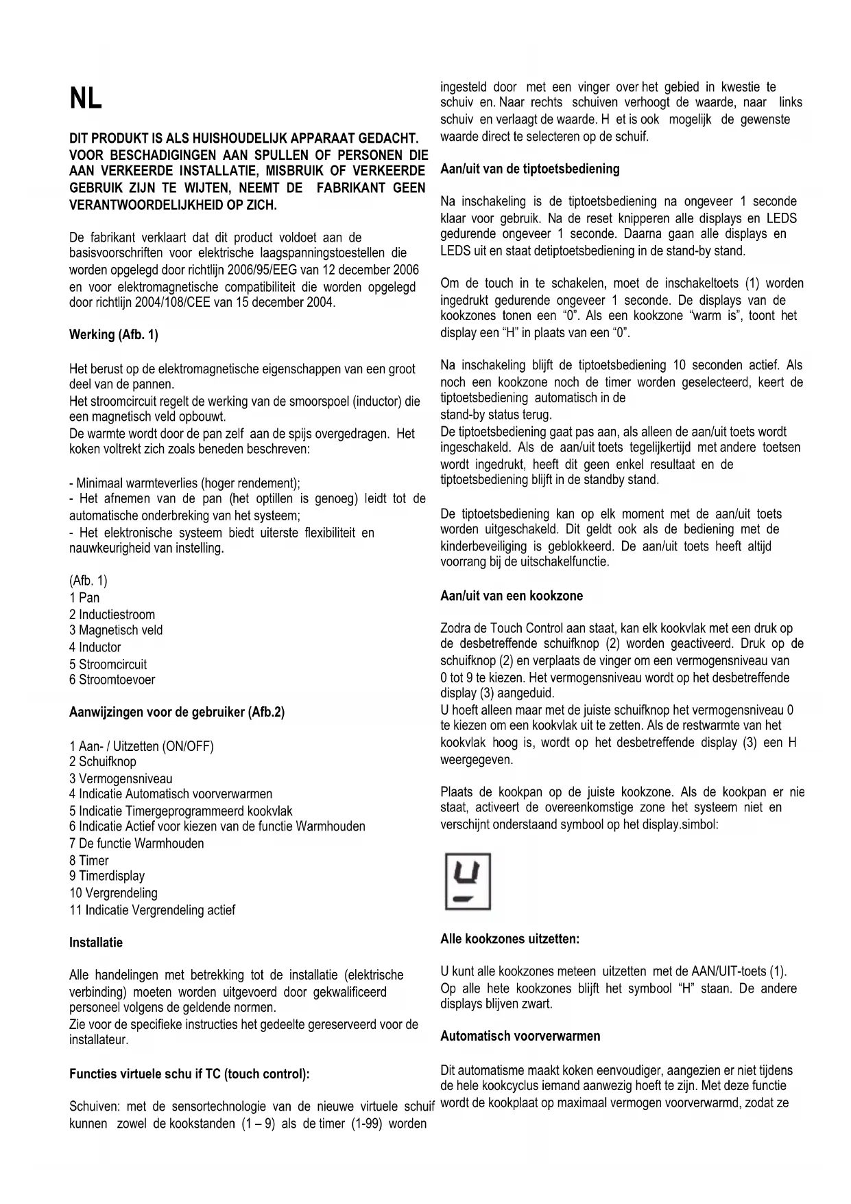 kookzones tonen een “0”. Als een kookzone “warm is”, toont het