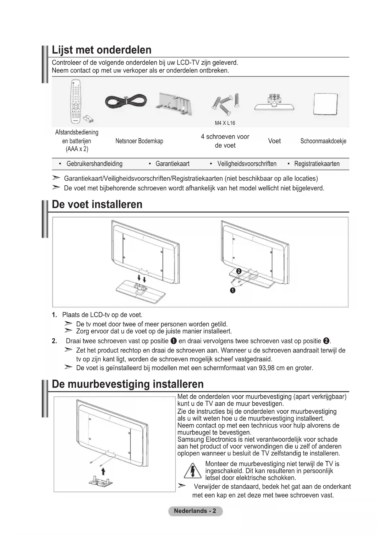 Controleer of de volgende onderdelen bij uw LCD-TV zijn geleverd.