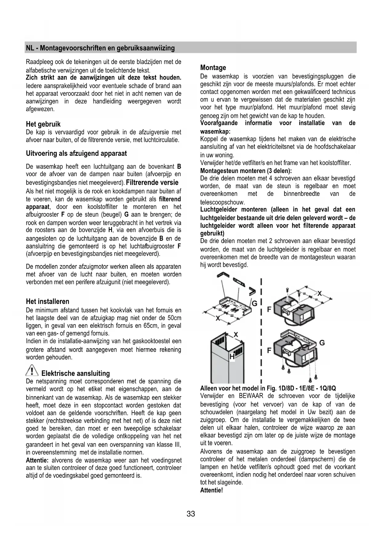 X F F G G Alleen voor het model in Fig. 1D/8D - 1E/8E - 1Q/8Q Verwijder en BEWAAR de schroeven voor de tijdelijke