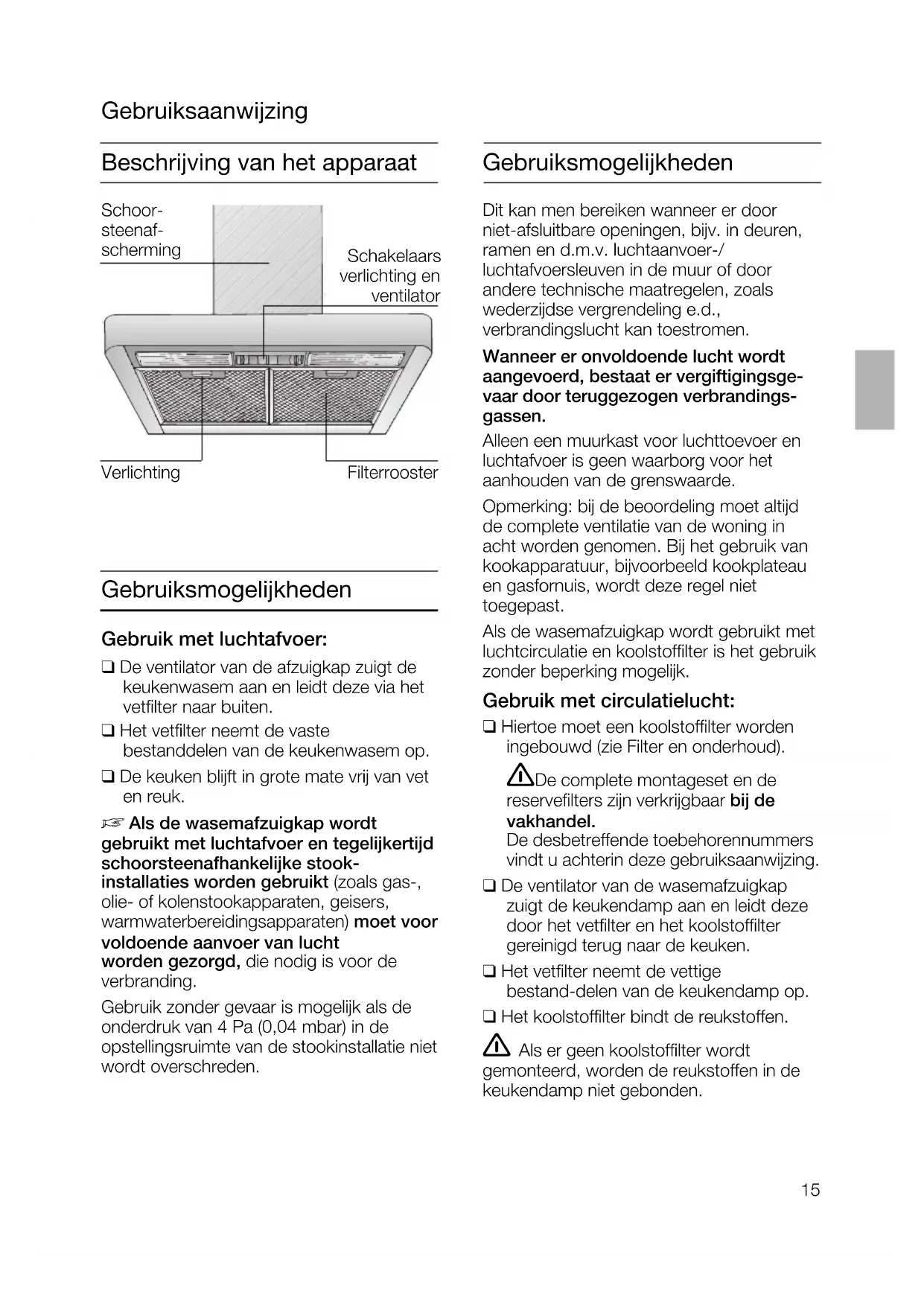 De wasemafzuigkap mag uitsluitend door