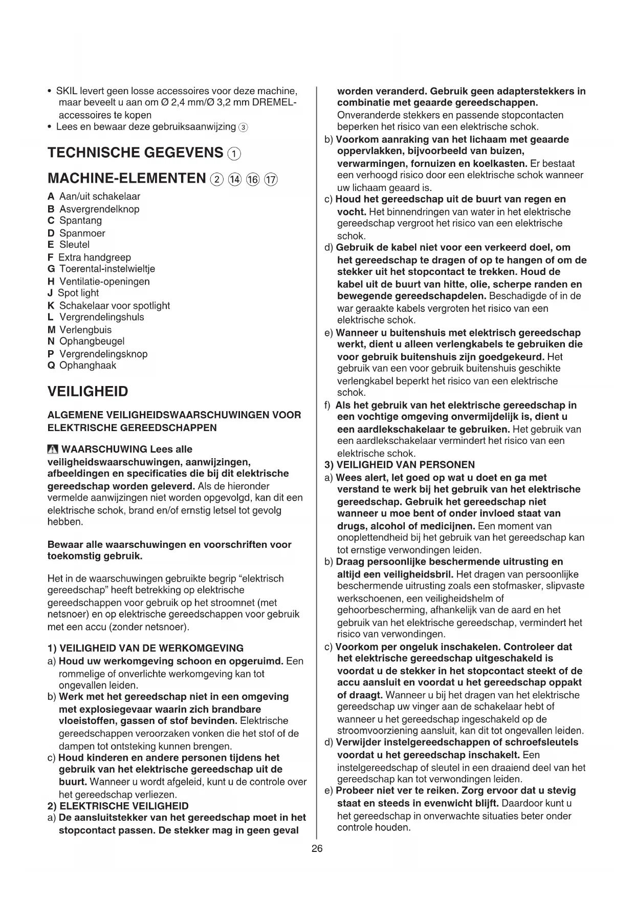 VEILIGHEID ALGEMENE VEILIGHEIDSWAARSCHUWINGEN VOOR ELEKTRISCHE GEREEDSCHAPPEN WAARSCHUWING Lees alle