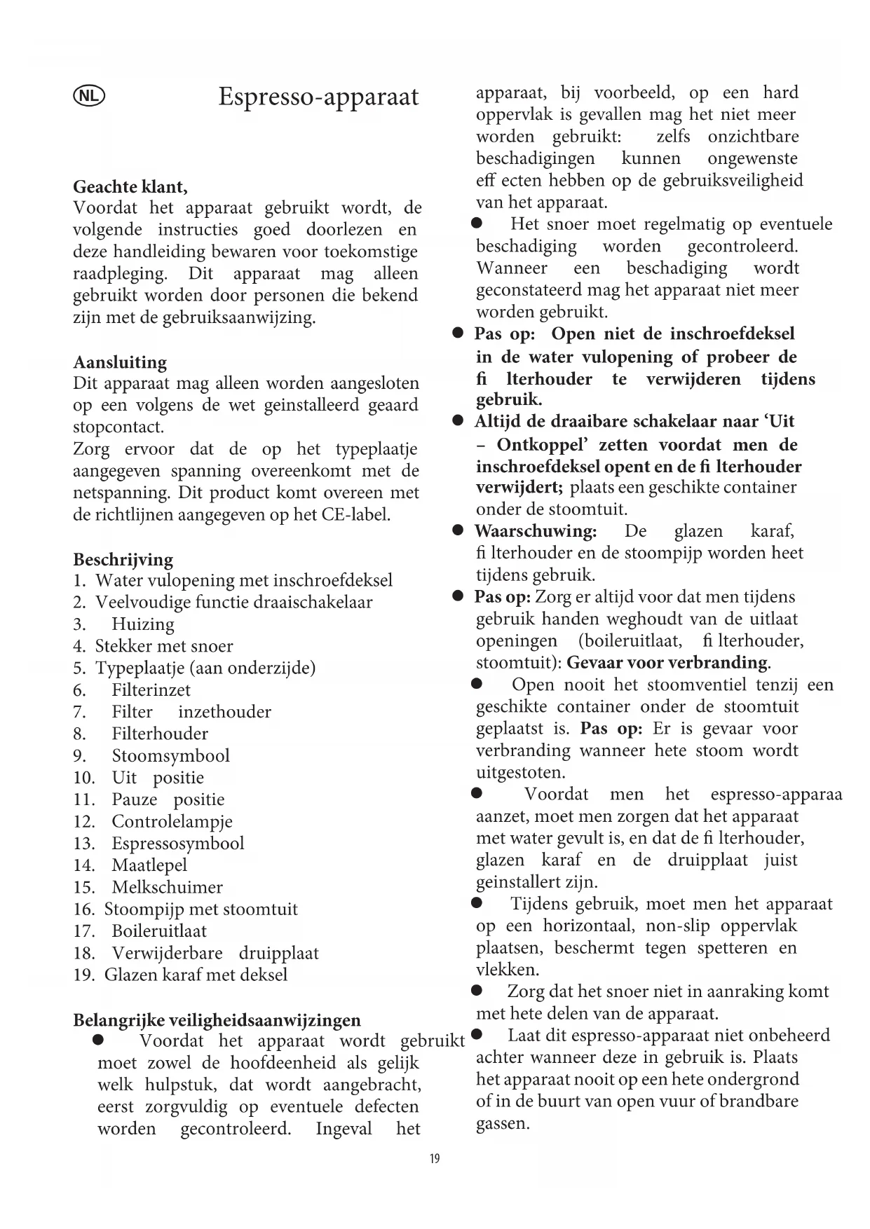 Laat dit espresso-apparaat niet onbeheerd