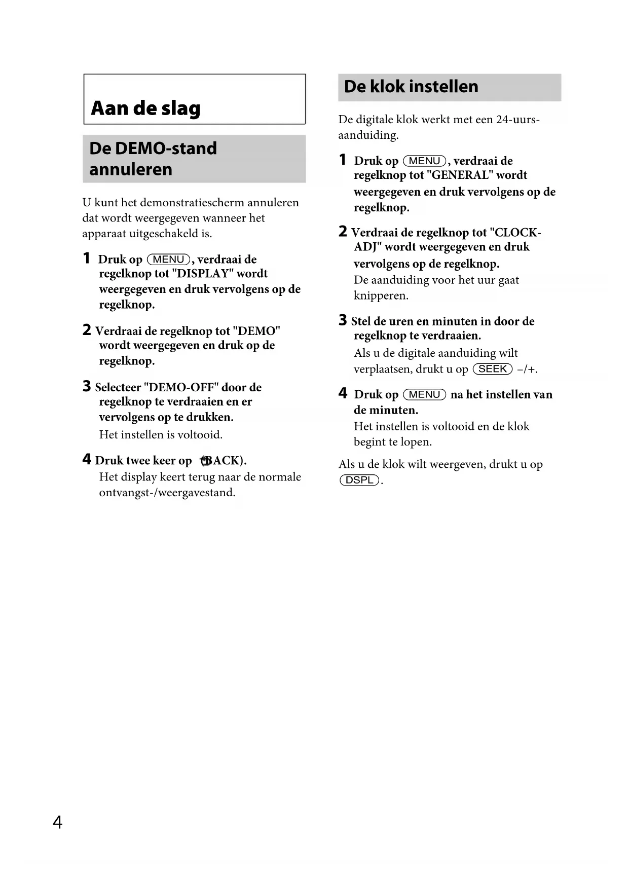 4 Druk twee keer op (BACK).