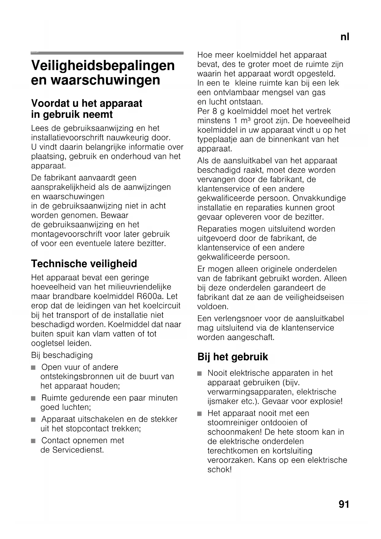 ijsmaker etc.). Gevaar voor explosie!
