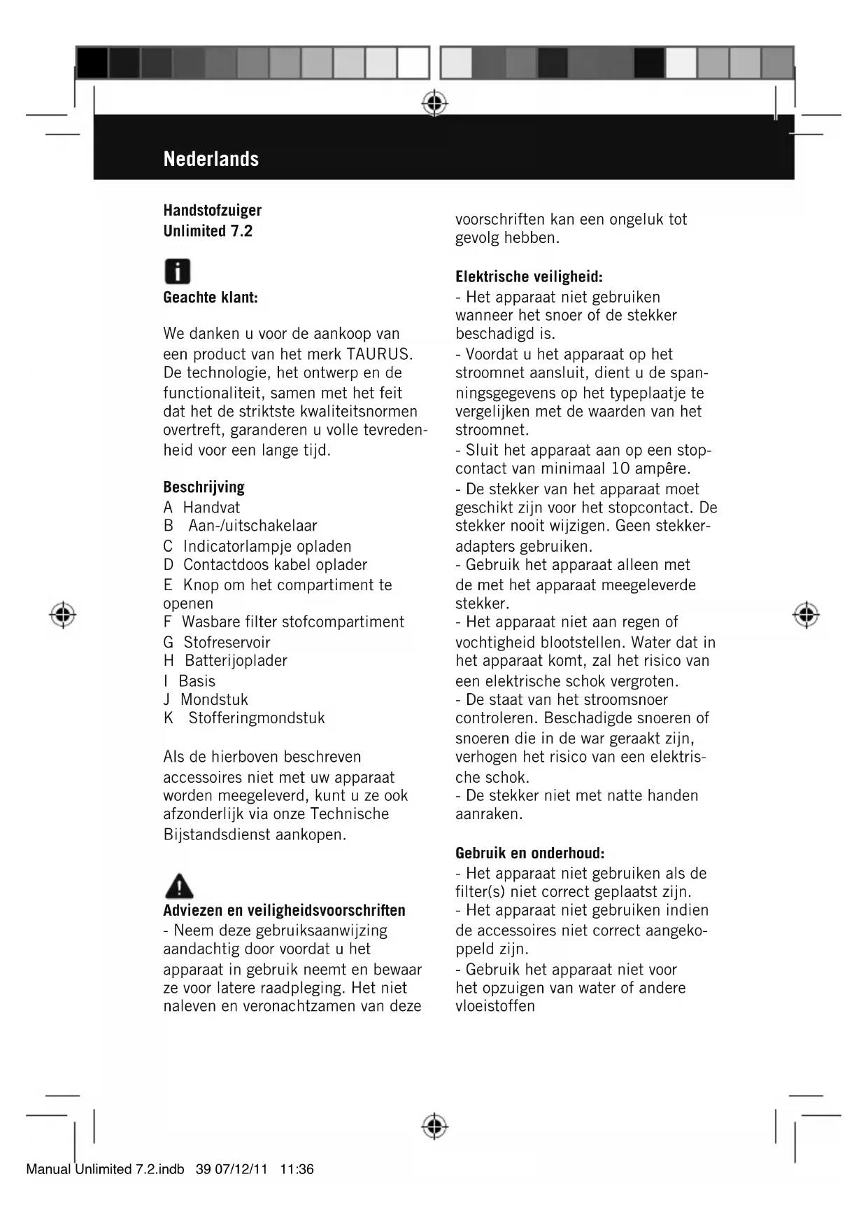 GEBRUIKSAANWIJZING Unlimited 7.2 TAURUS