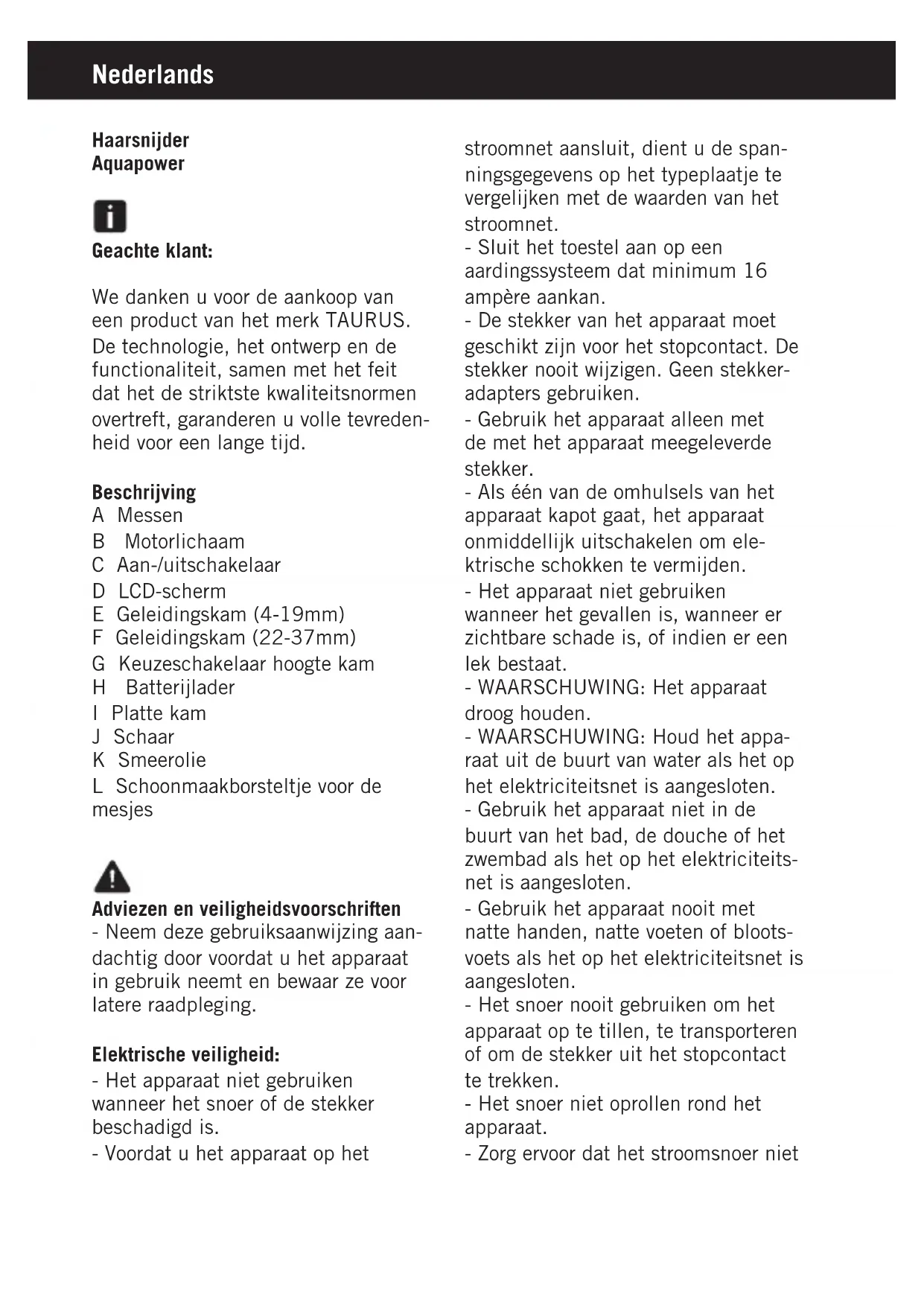 GEBRUIKSAANWIJZING Aquapower TAURUS