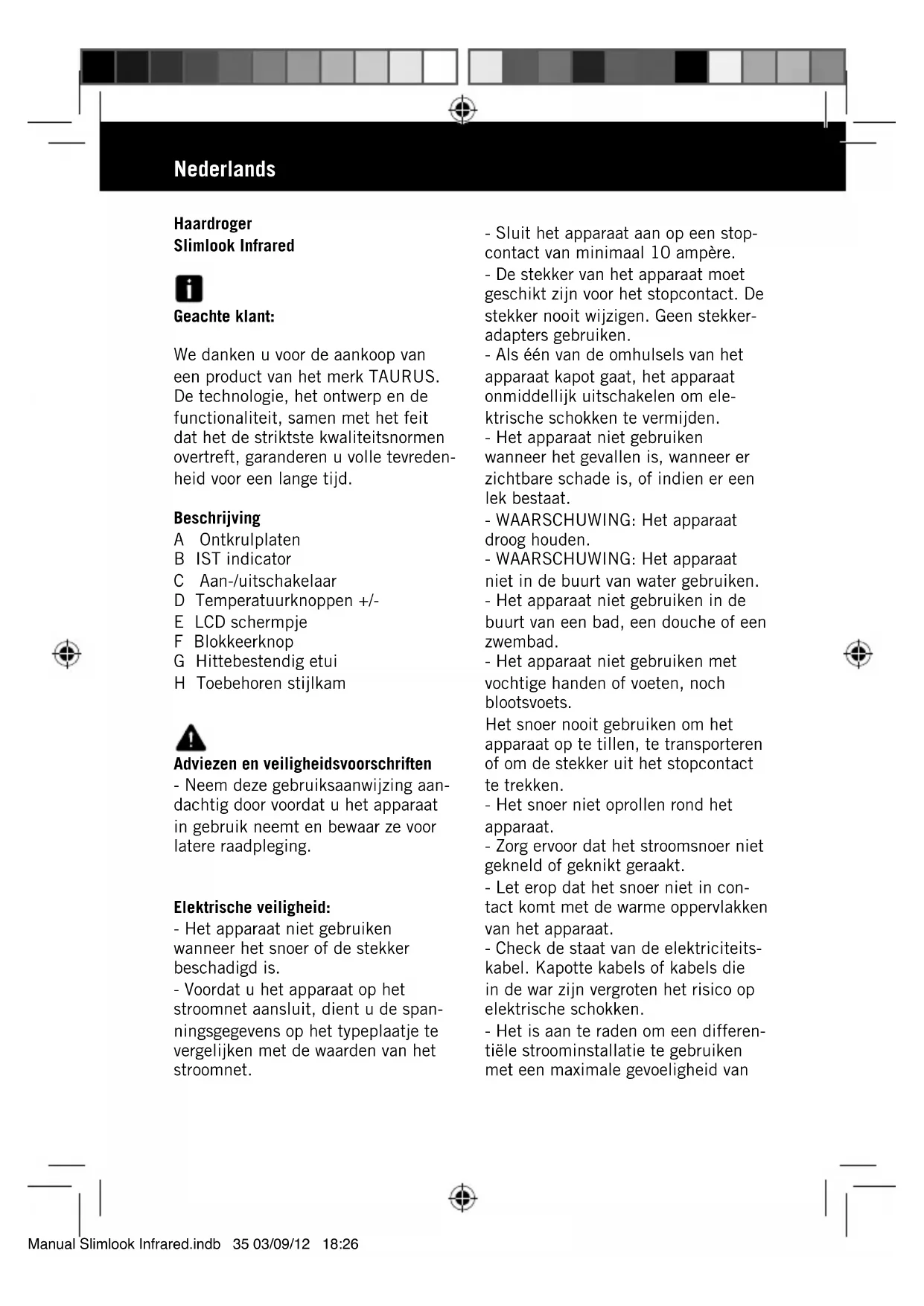 Download de handleiding voor uw Stijltang in PDF-formaat gratis! Vind uw handleiding Slimlook Infrared - TAURUS en neem uw elektronisch apparaat weer in handen. Op deze pagina staan alle documenten die nodig zijn voor het gebruik van uw apparaat. Slimlook Infrared van het merk TAURUS.