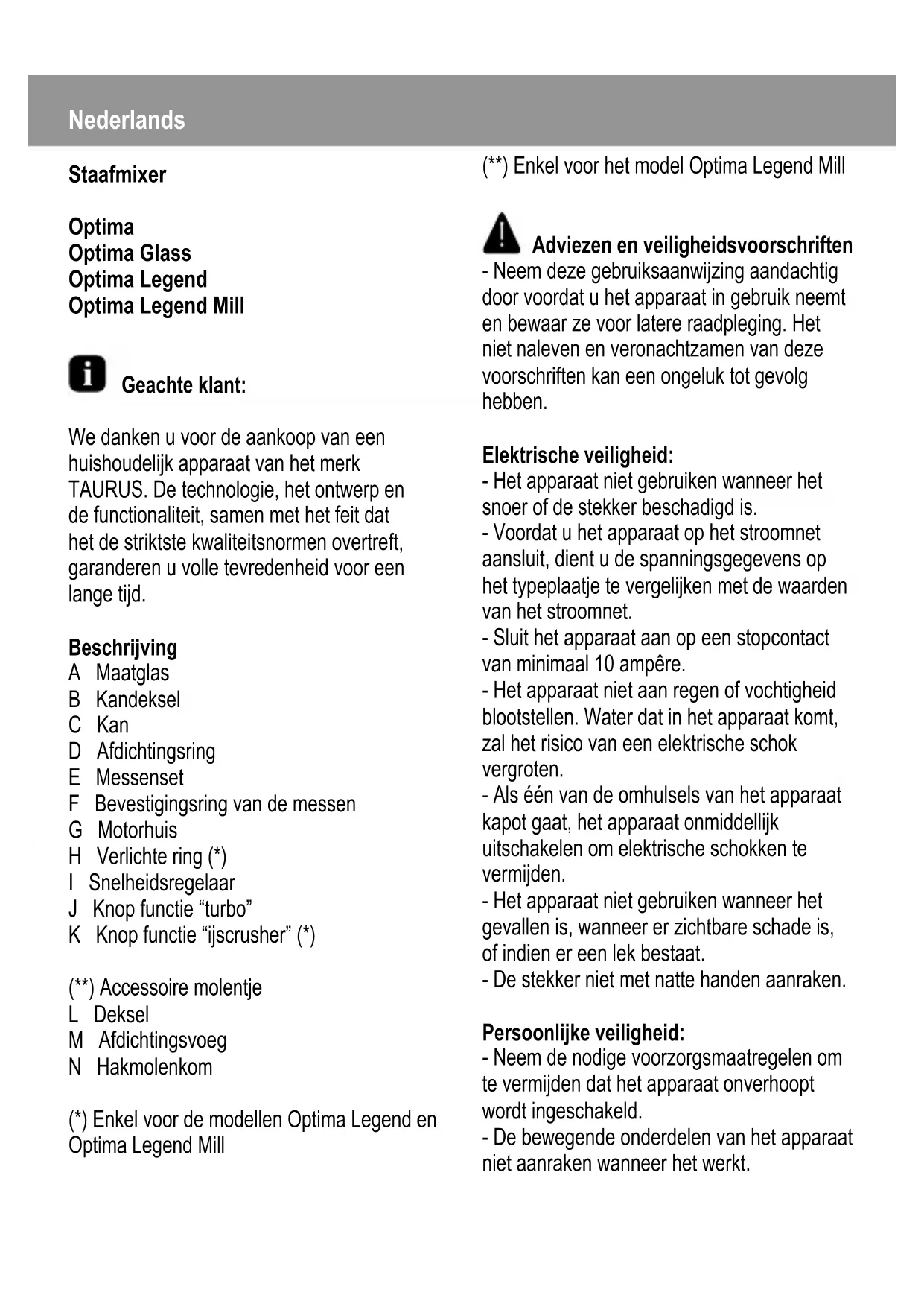 Download de handleiding voor uw Blender in PDF-formaat gratis! Vind uw handleiding Optima Legend - TAURUS en neem uw elektronisch apparaat weer in handen. Op deze pagina staan alle documenten die nodig zijn voor het gebruik van uw apparaat. Optima Legend van het merk TAURUS.