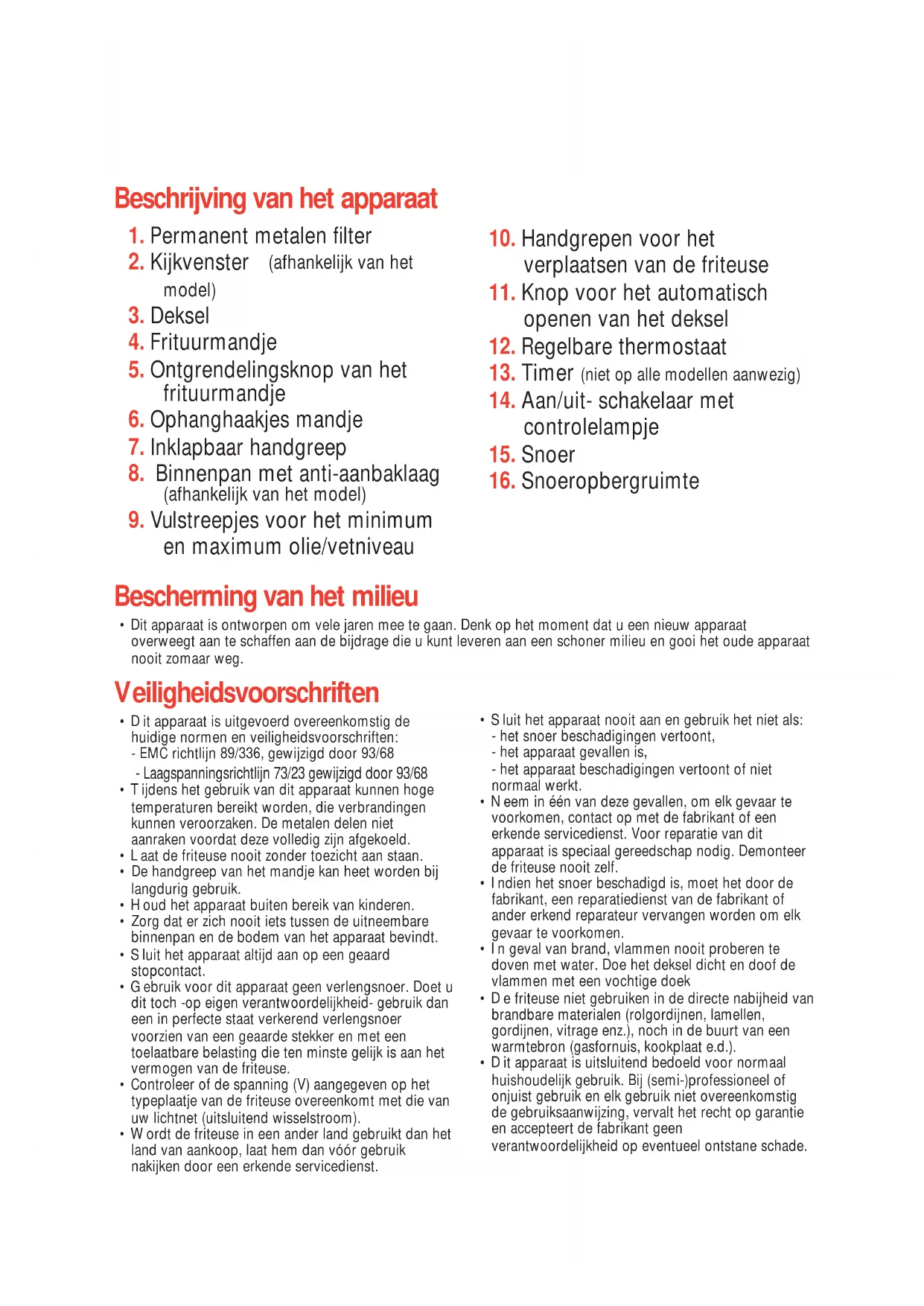 De friteuse doet het nietD Gerätebeschreibung