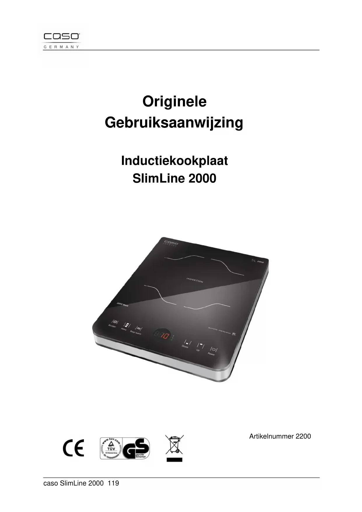 SlimLine 2000 - Fornuis CASO - Gratis gebruiksaanwijzing en handleiding