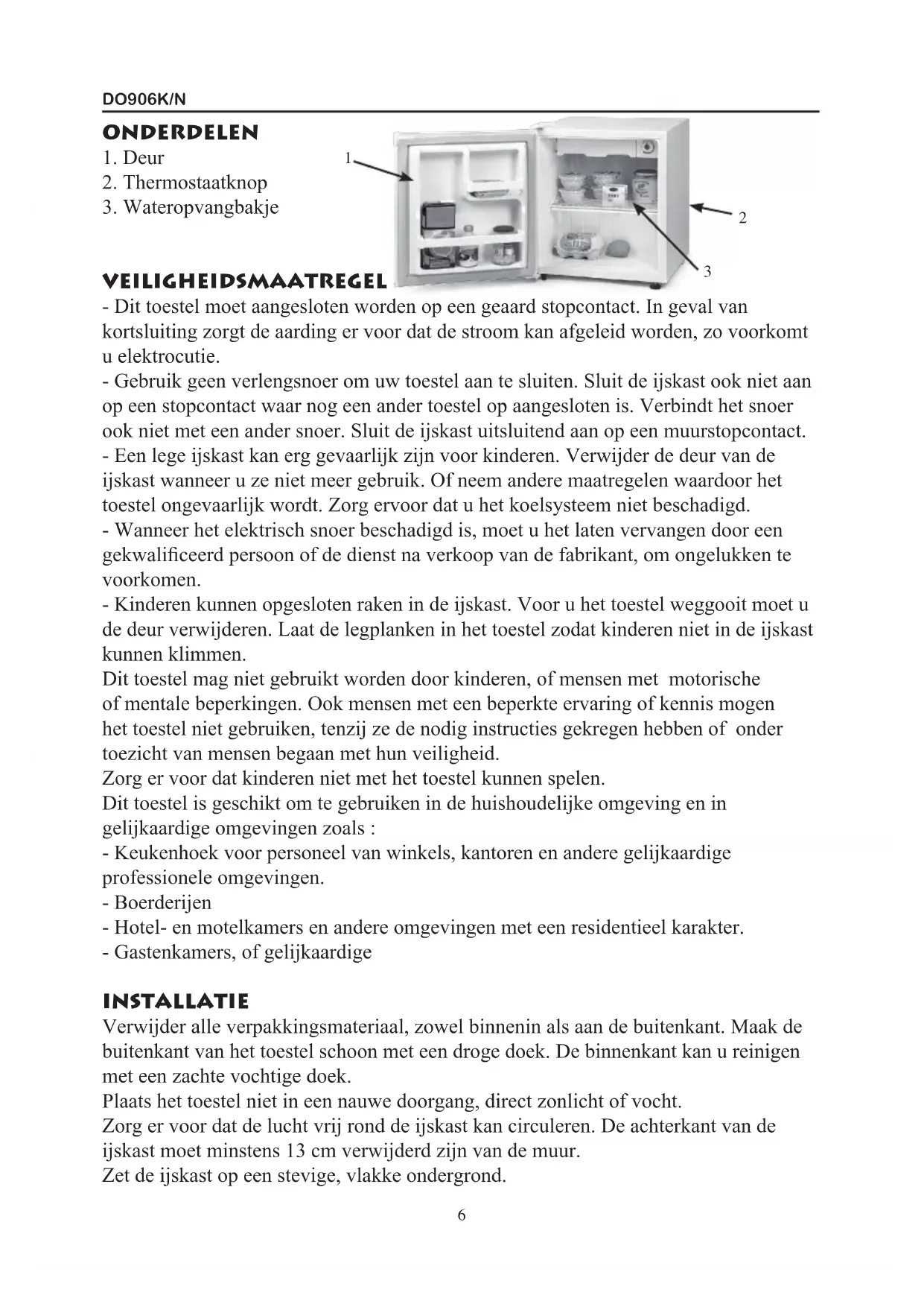 HANDLEIDING MODE D’EMPLOI GEBRAUCHSANLEITUNG INSTRUCTION BOOKLET PRODUCT OF KOELKAST REFRIGERATEUR KÜHLSCHRANK REFRIDGERATOR DO906K/NDO906K/N GARANTIEVOORWAARDEN Dit apparaat heeft een garantietermijn van 2 jaar vanaf de datum van aankoop.