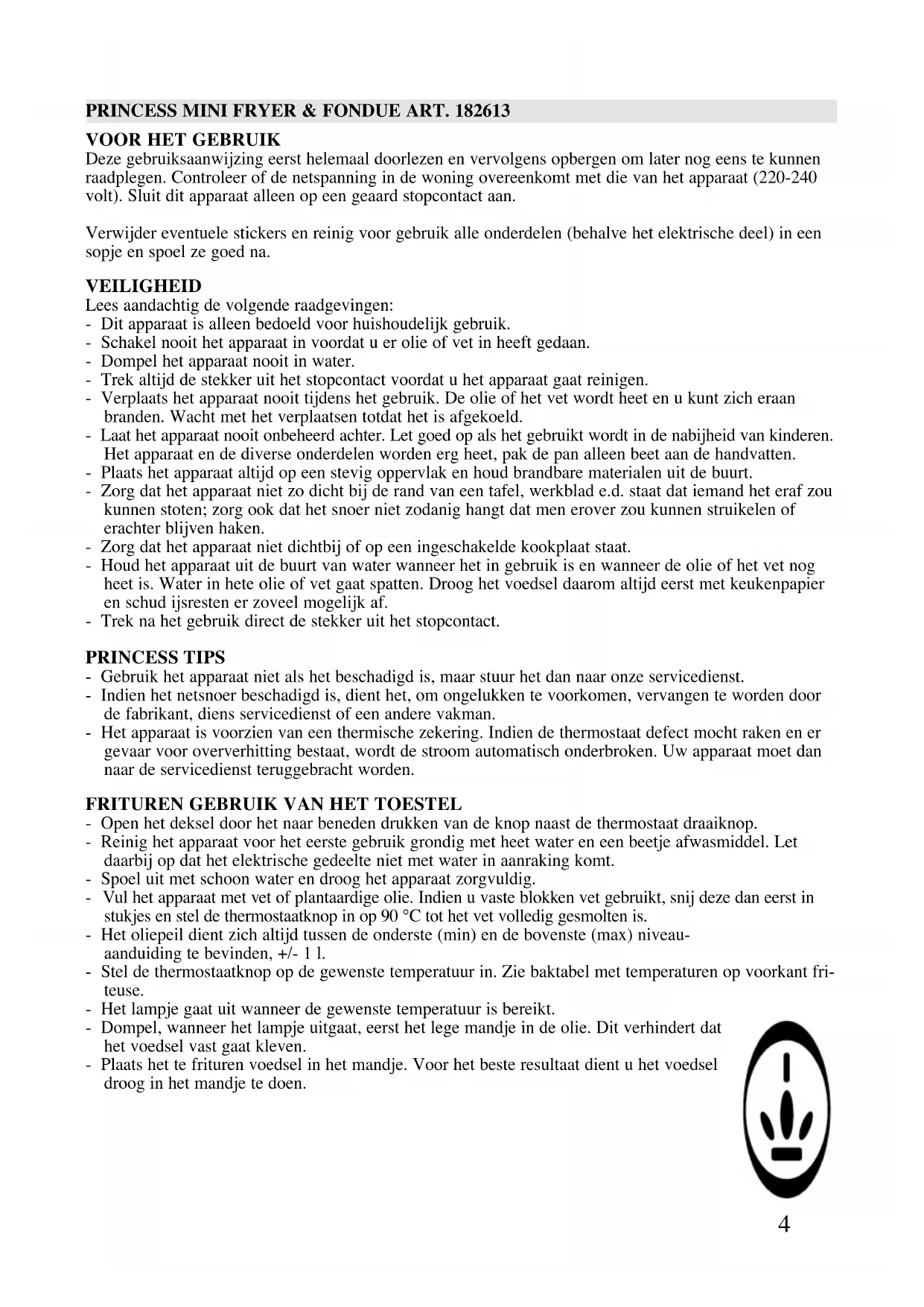 GEBRUIKSAANWIJZING 182613 PRINCESS