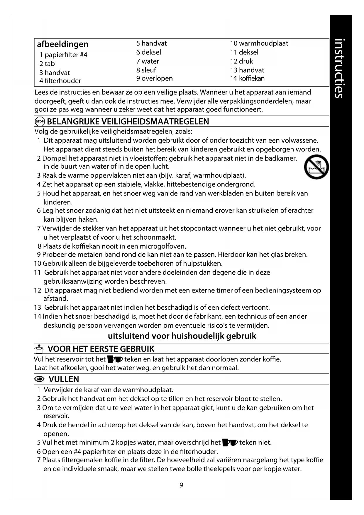 8 Plaats de koffiekan nooit in een microgolfoven.