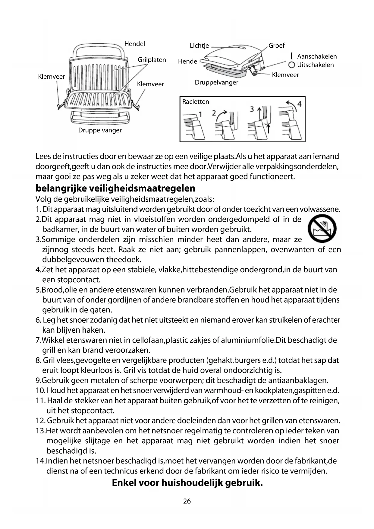 12. Gebruik het apparaat niet voor andere doeleinden dan voor het grillen van etenswaren.
