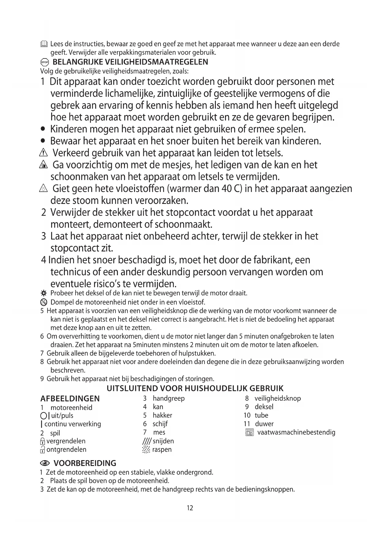 s Ga voorzichtig om met de mesjes, het ledigen van de kan en het