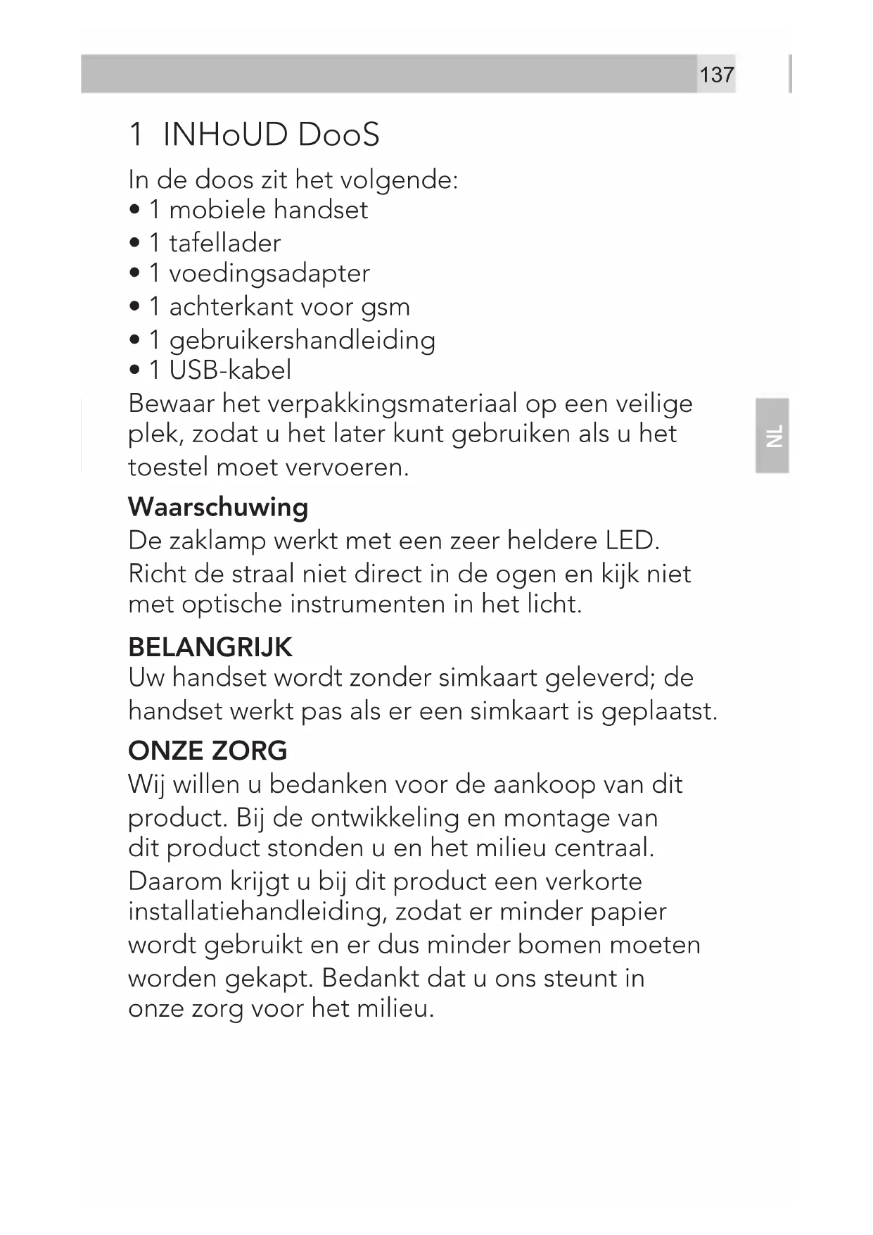 BELANGRIJK Uw handset wordt zonder simkaart geleverd; de