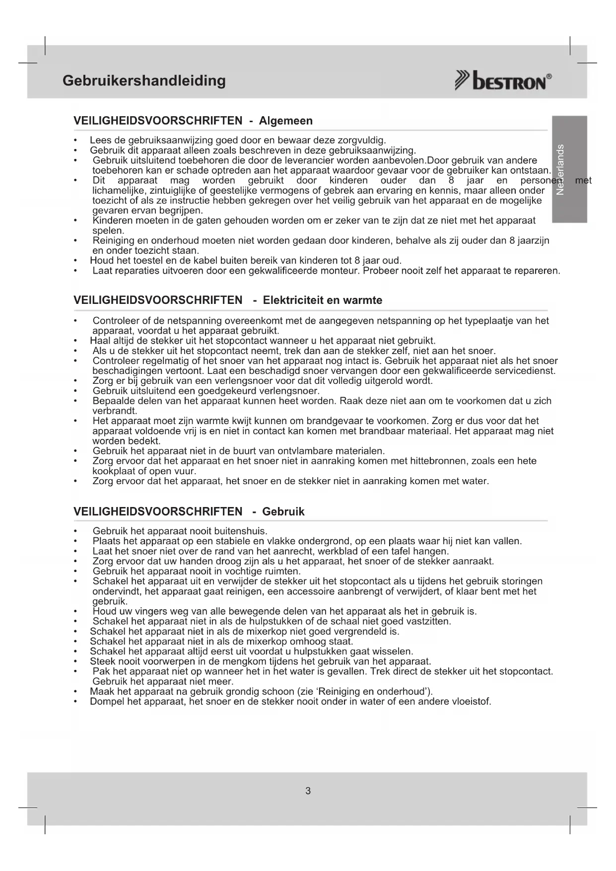 Nederlands VEILIGHEIDSVOORSCHRIFTEN - Algemeen