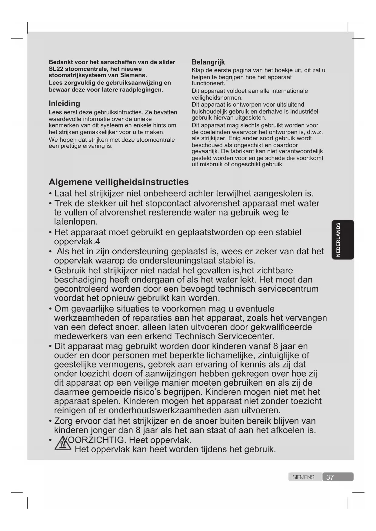 Het oppervlak kan heet worden tijdens het gebruik.38 S I E M E N SNEDERLANDS Beschrijving