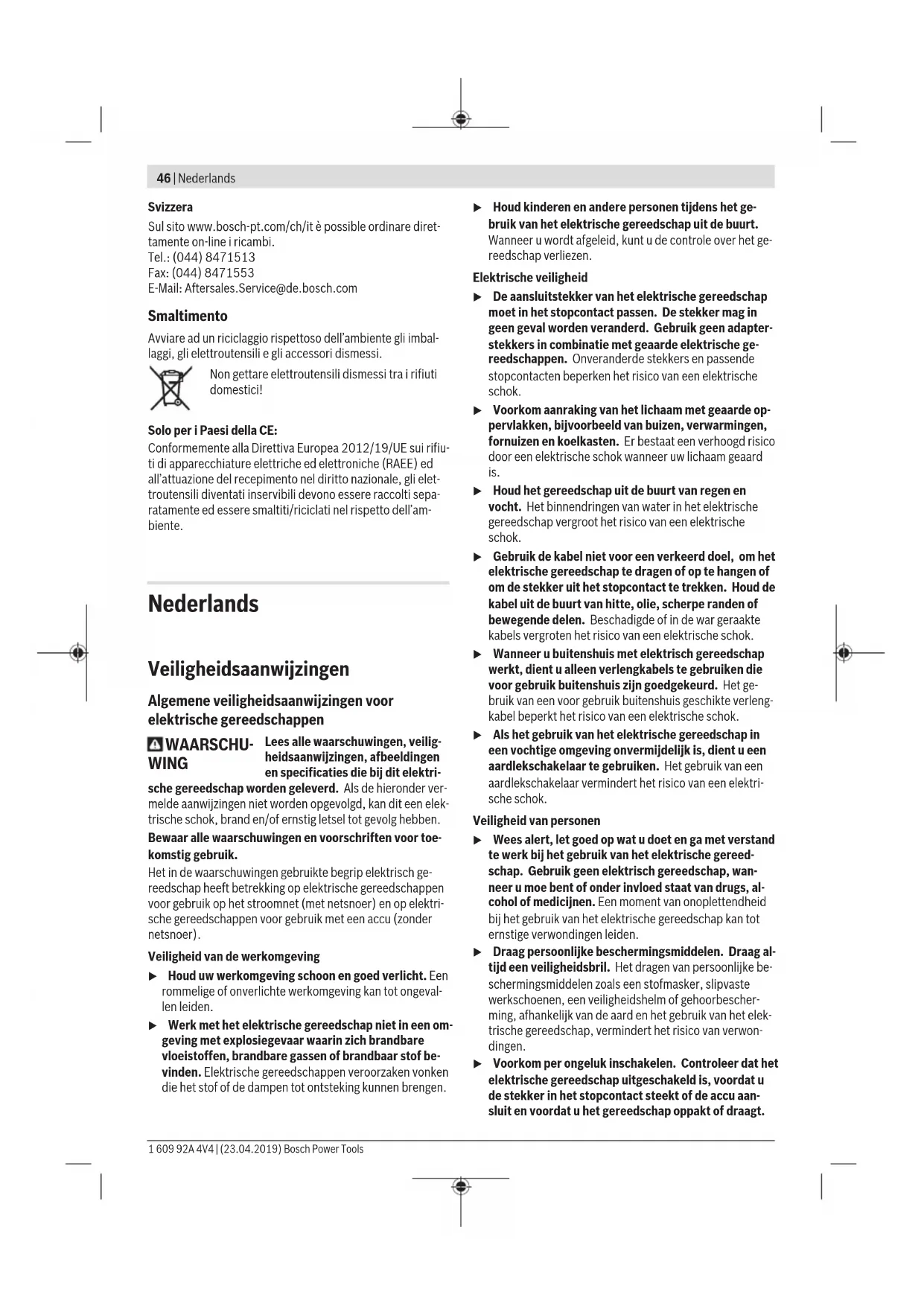 sluit en voordat u het gereedschap oppakt of draagt. 1 609 92A 4V4 | (23.04.2019) Bosch Power ToolsSvizzeraNederlands | 47