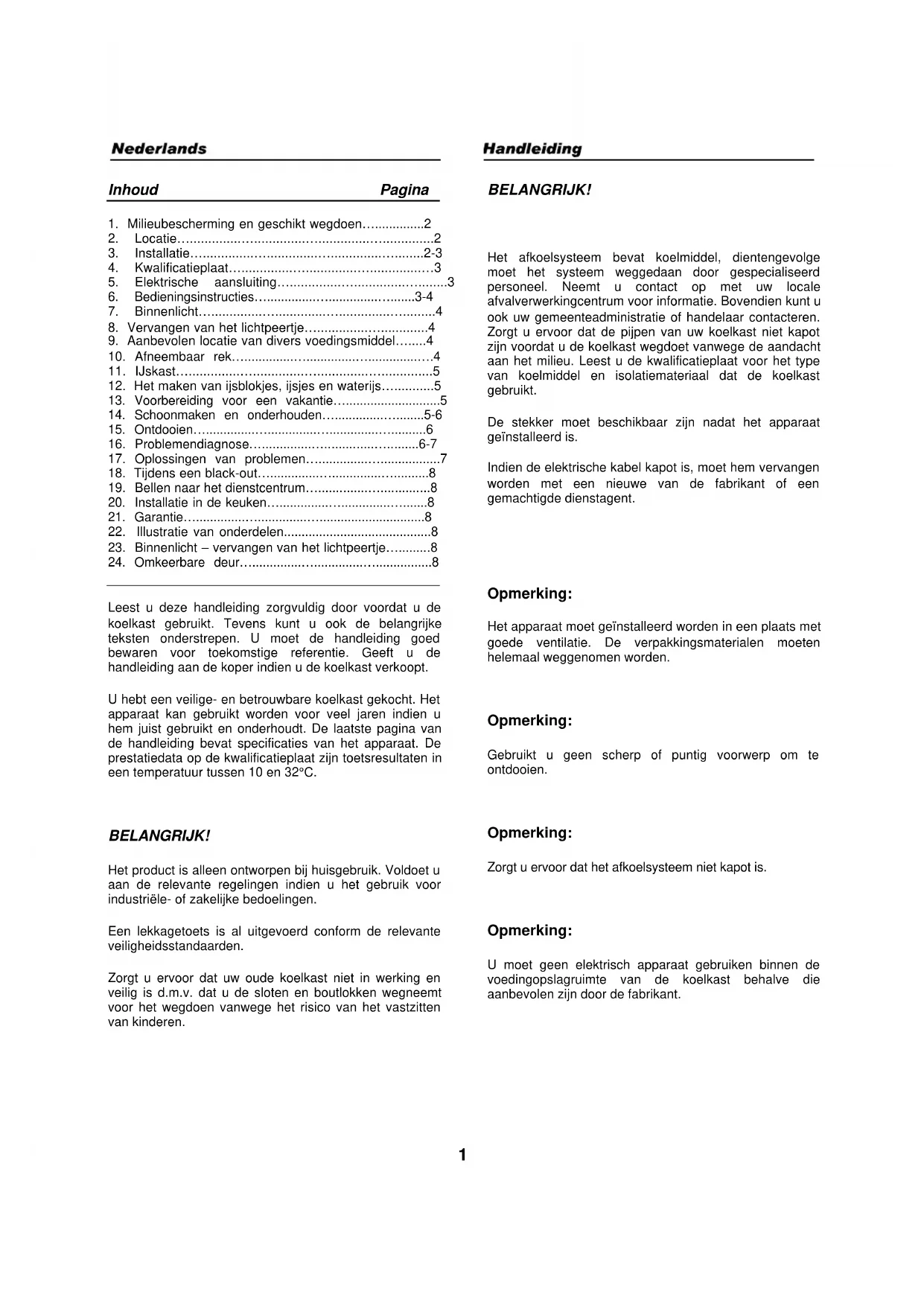 koelkast gebruikt. Tevens kunt u ook de belangrijke