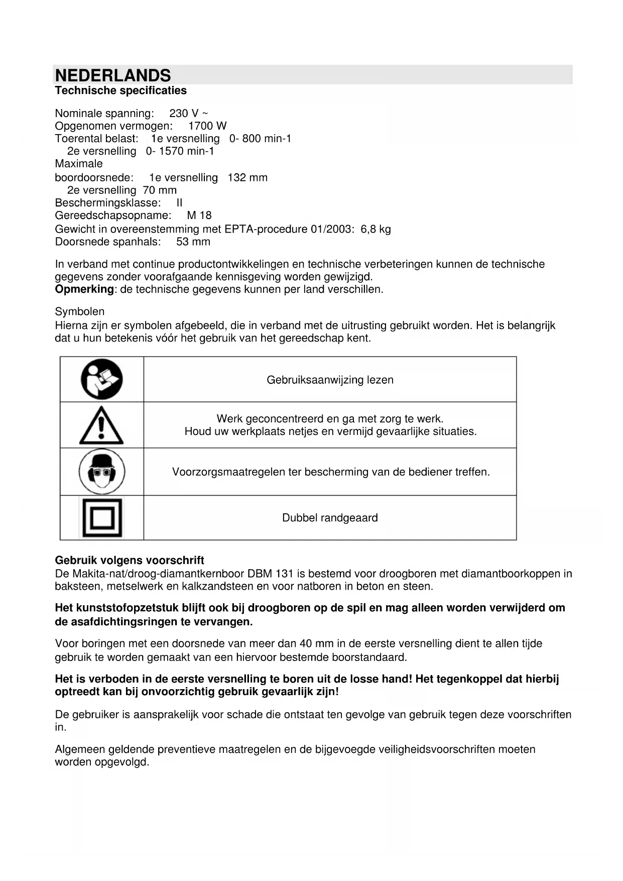 GEBRUIKSAANWIJZING DBM131 MAKITA