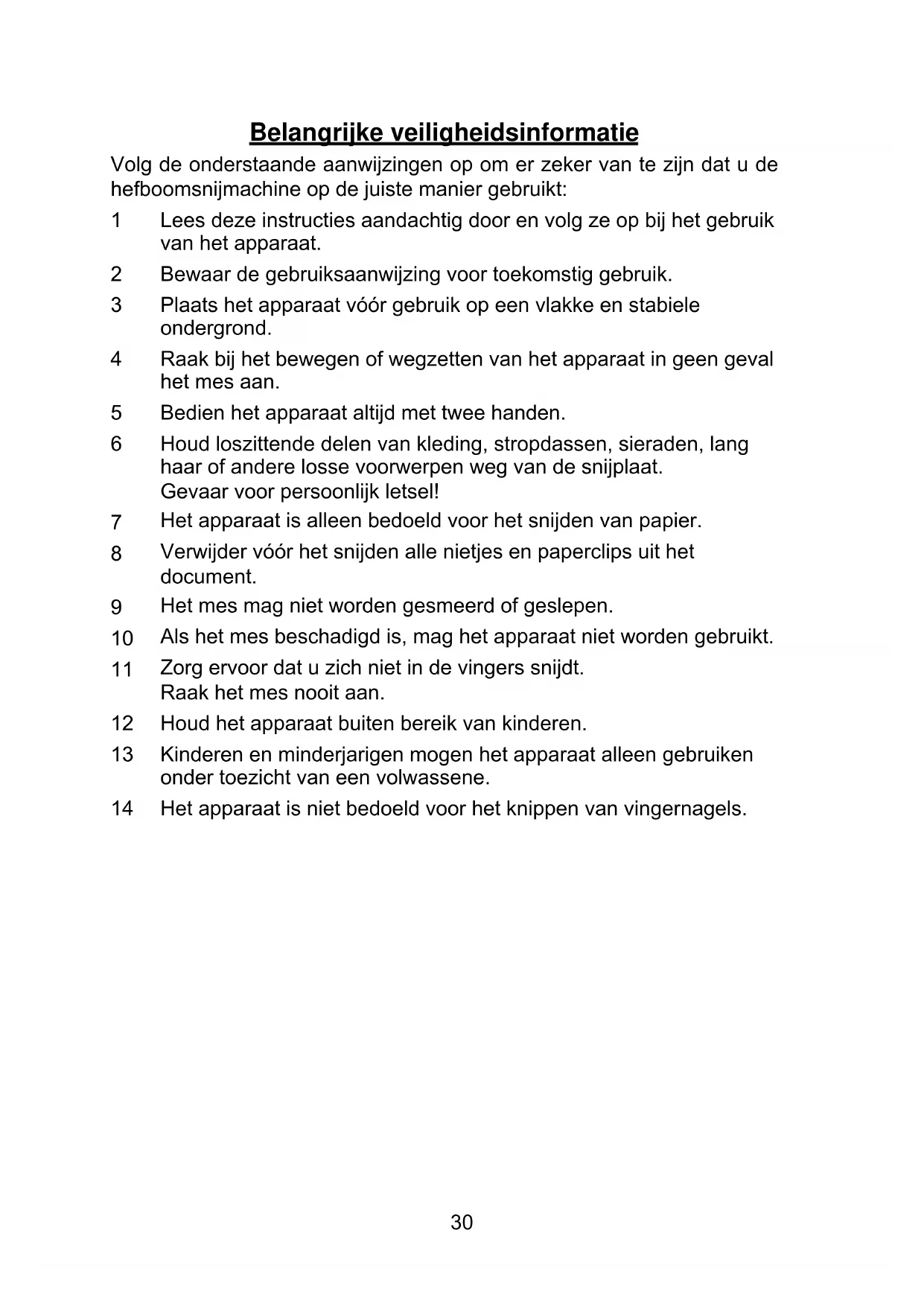 Het apparaat is niet bedoeld voor het knippen van vingernagels.31