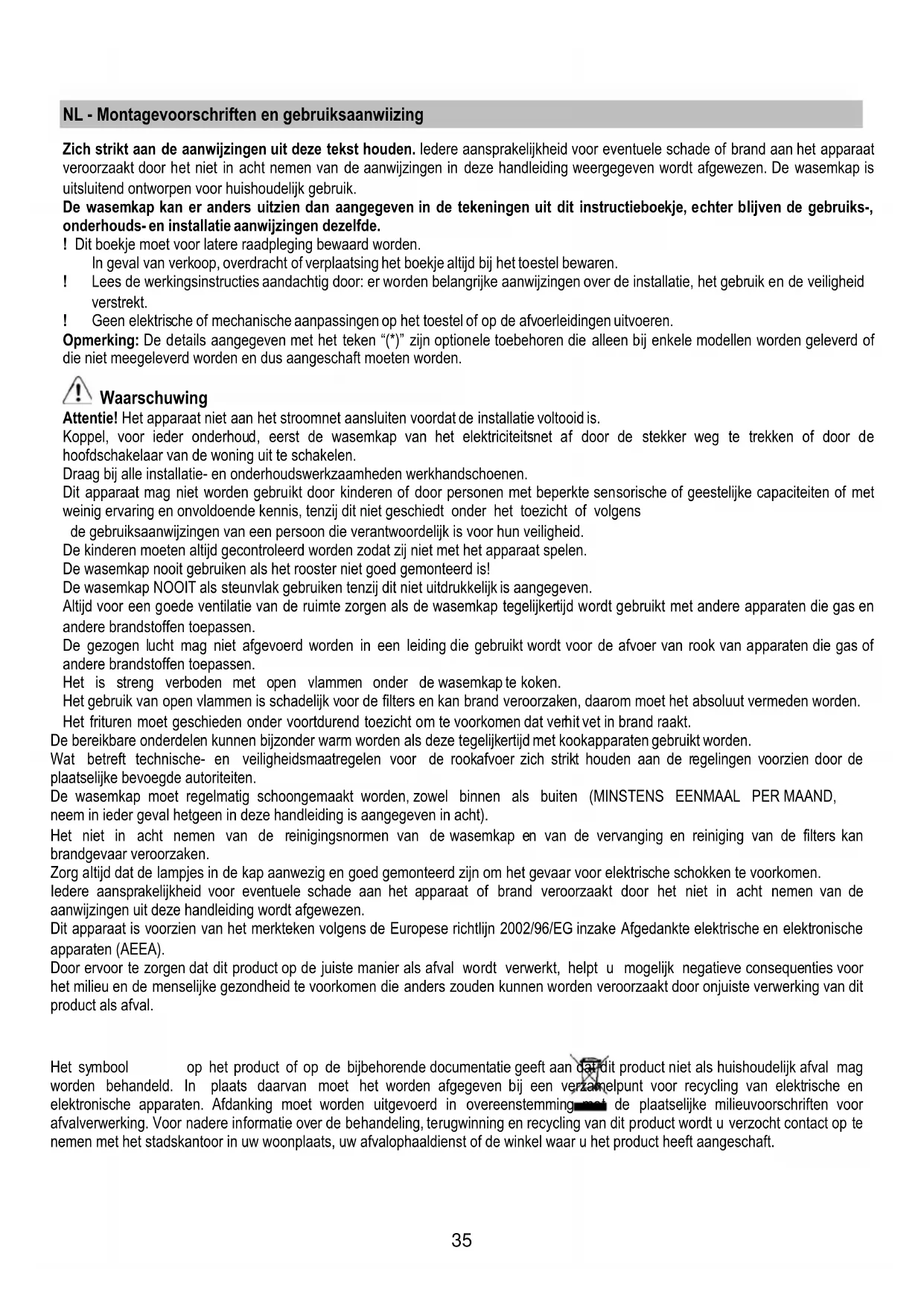 veroorzaakt door het niet in acht nemen van de aanwijzingen in deze handleiding weergegeven wordt afgewezen. De wasemkap is