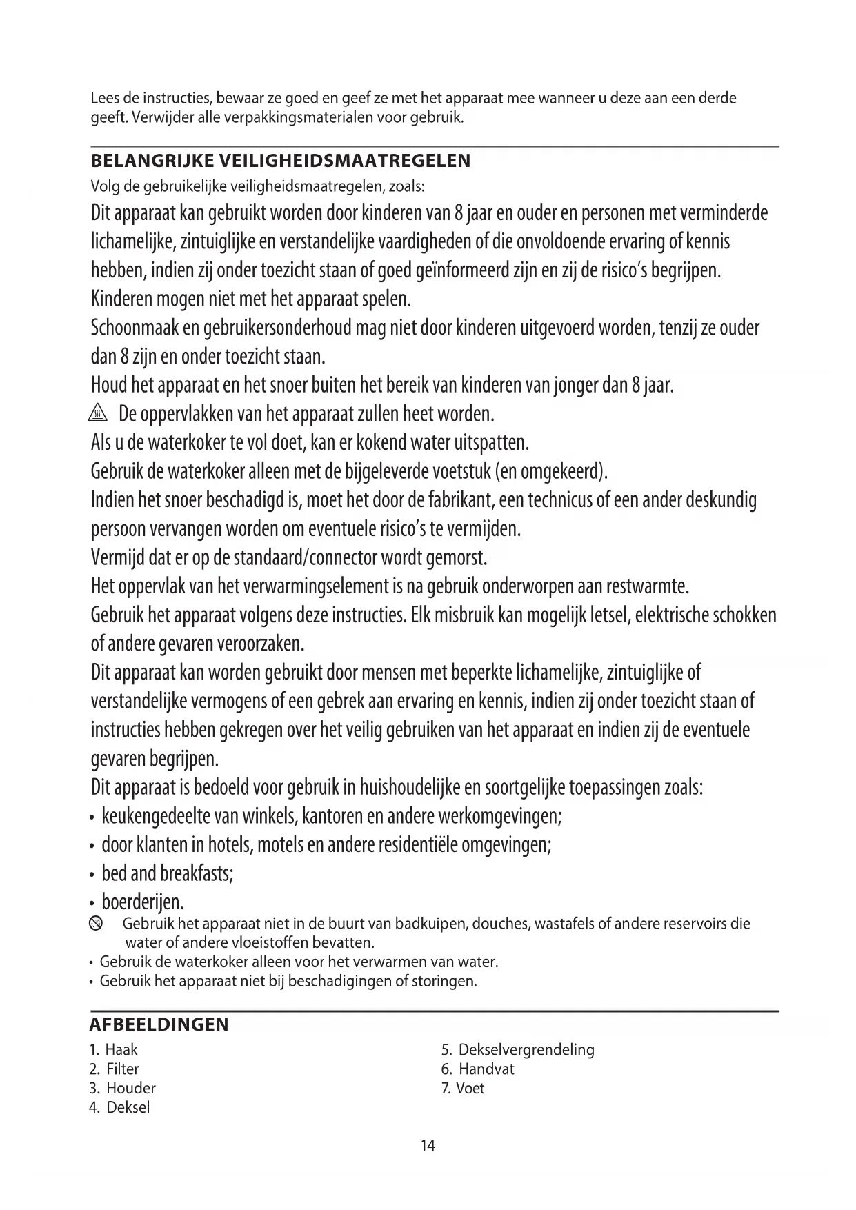 • Gebruik de waterkoker alleen voor het verwarmen van water.