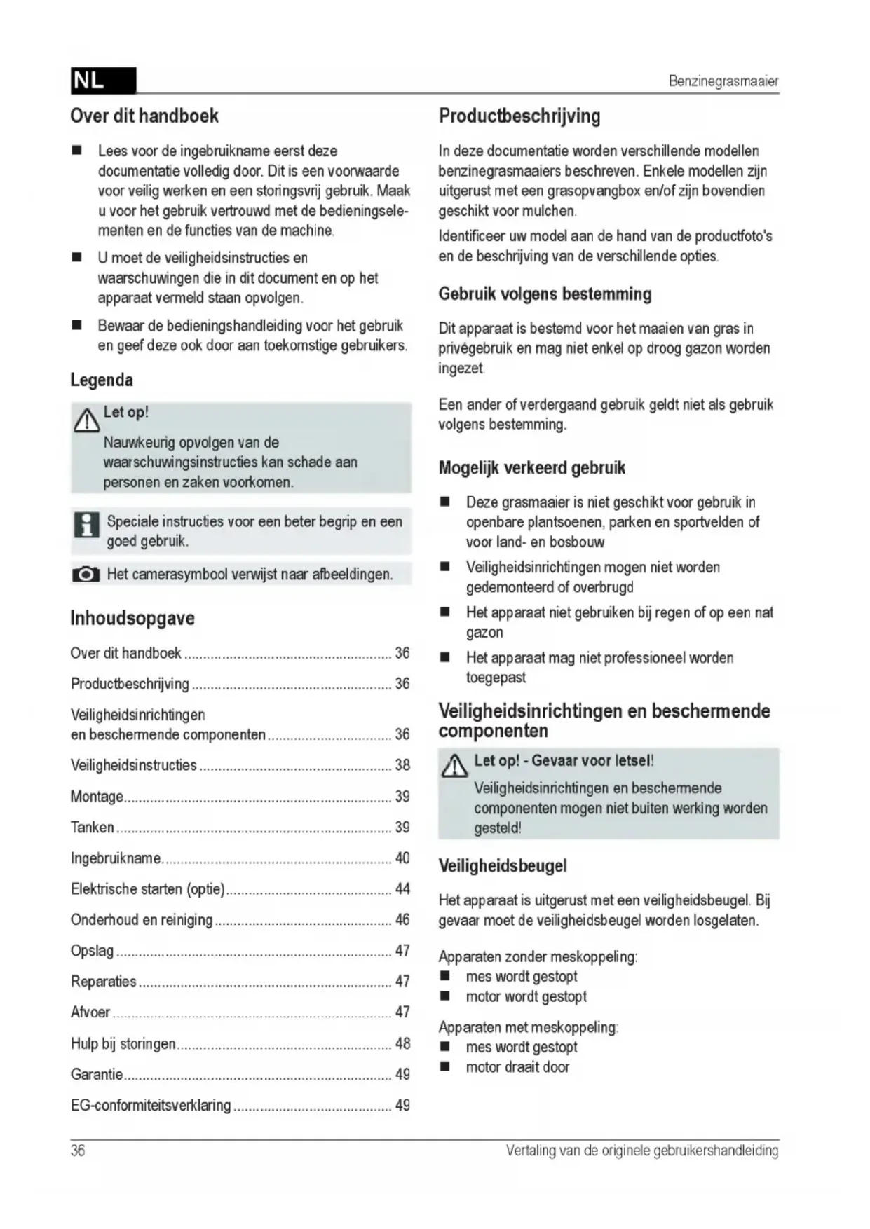 4 Veiligheidsbeugel 12 Gebruikshandleiding