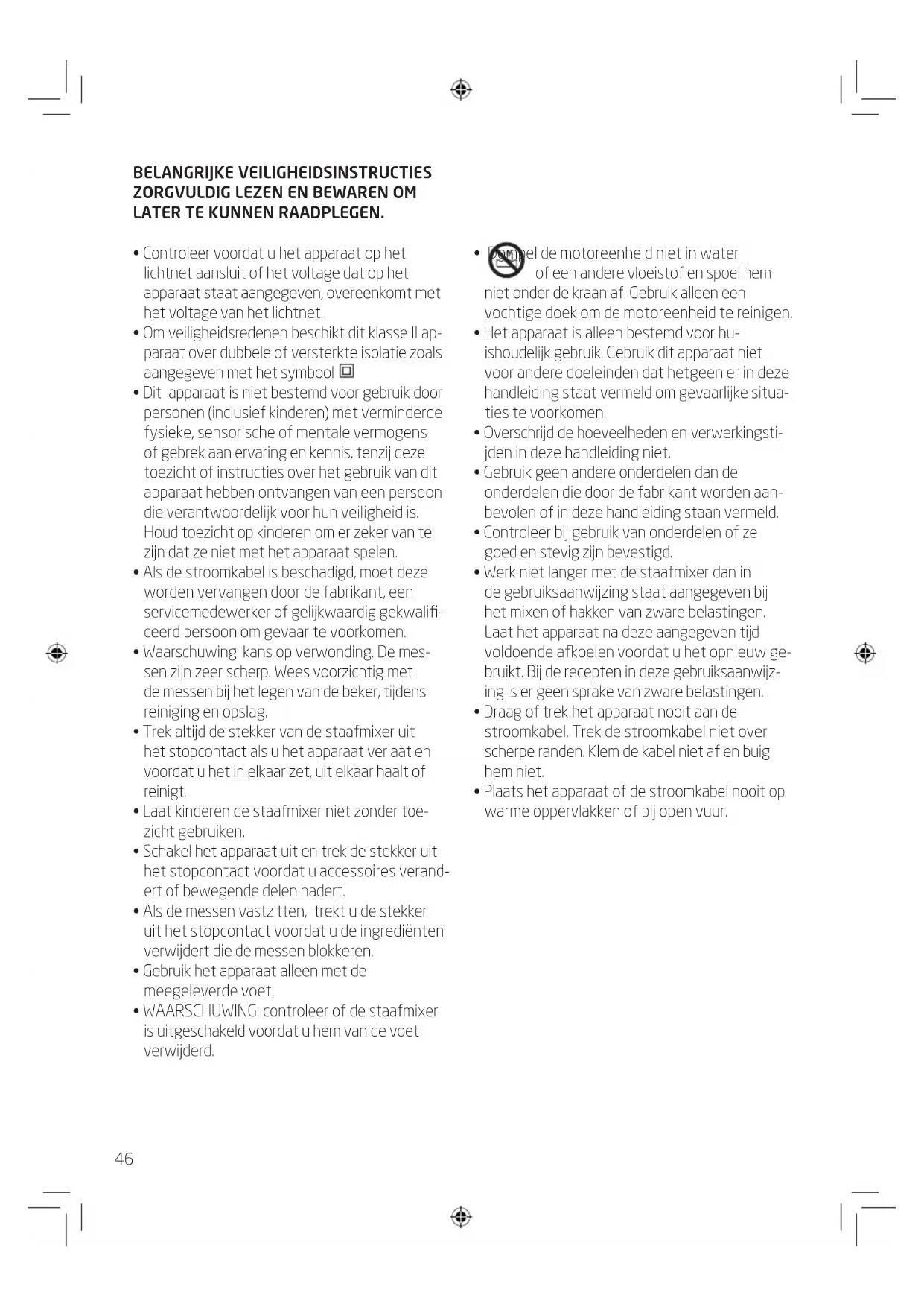- Om veiligheidsredenen beschikt dit klassie II apparatus over dubbele of versterkte isolatie zoals aangegeven met het symbool