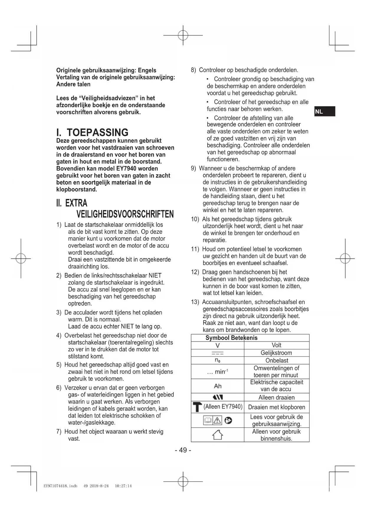 NL Originele gebruiksaanwijzing: Engels