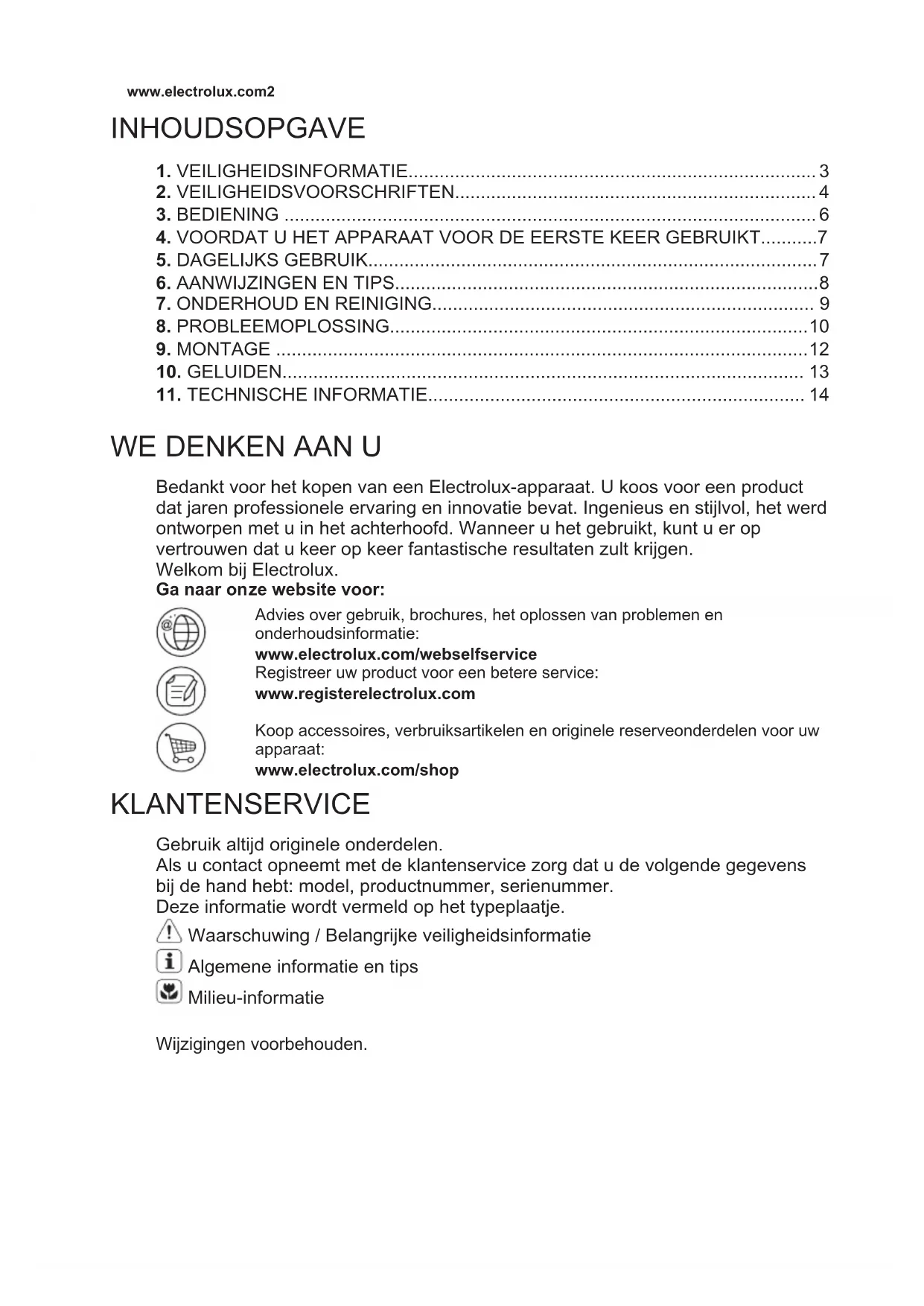 WE DENKEN AAN U Bedankt voor het kopen van een Electrolux-apparaat. U koos voor een product