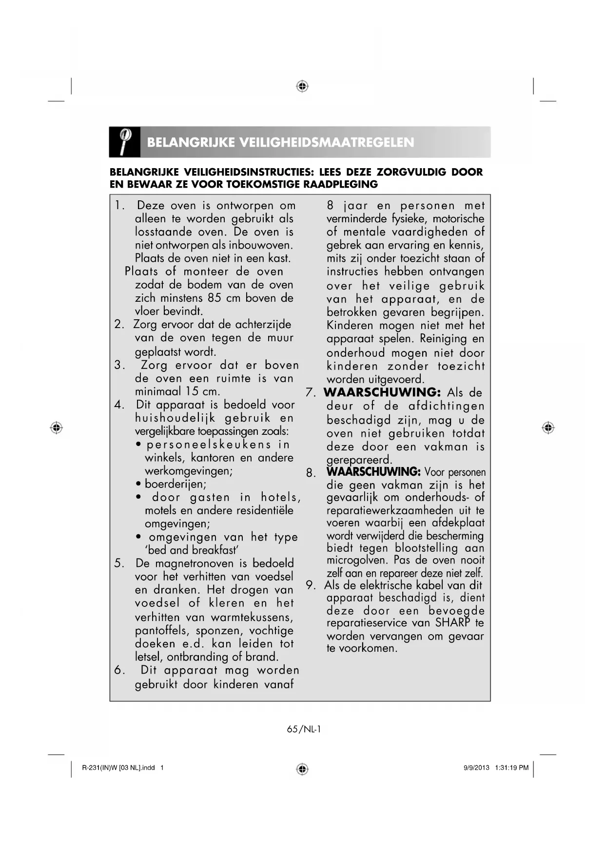 GEBRUIKSAANWIJZING R231(W)W SHARP